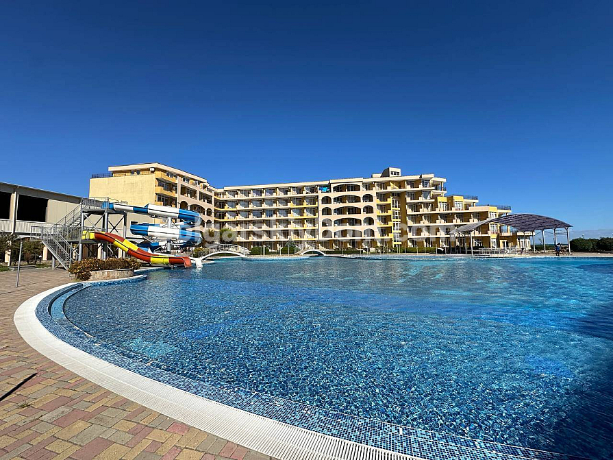 Die Wohnanlage Midia Grand Resort ist ein groß angelegtes Ferienprojekt direkt an der ersten Küstenlinie, das sowohl als Urlaubsziel als auch für die langfristige Nutzung sehr gefragt ist. Geschäfte, Supermärkte und Restaurants sind zu Fuß erreichbar. Die niedrige jährliche Instandhaltungsgebühr – nur 14 Euro pro qm – macht dieses Angebot zu einem der attraktivsten in seiner Kategorie.