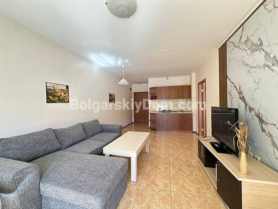 Sind Sie bereit für ein tolles neues Angebot mit einem wirklich angenehmen Budget? Das Team der Agentur Bolgarskiy Dom hat für Sie den perfekten „Schlüssel“ zum Leben in erster Meereslinie gefunden! Wir präsentieren eine großzügige Zweizimmerwohnung im Komplex Midia Grand Resort, nur 50 Meter vom Meer im malerischen Aheloy entfernt. Dies sind 80 qm purer Komfort, komplett bezugsfertig, gelegen im Erdgeschoss eines sechsstöckigen Gebäudes. Innen erwartet Sie eine wirklich komfortable und helle Atmosphäre: ein praktisches Interieur in hellen Tönen, ergänzt durch Akzente mit Marmorstruktur. Im geräumigen Wohnzimmer stehen bereits ein gemütliches Ecksofa und ein Fernseher, während die offene Küche mit einer modernen Einbauküche und allen notwendigen Geräten ausgestattet ist. Eine Immobilie genau in dem Format, das sich sowohl für den Eigenbedarf als auch für eine rentable Vermietung perfekt eignet.