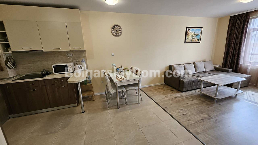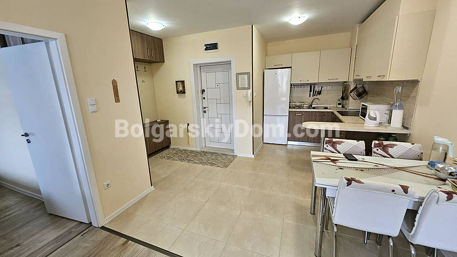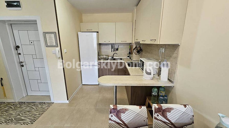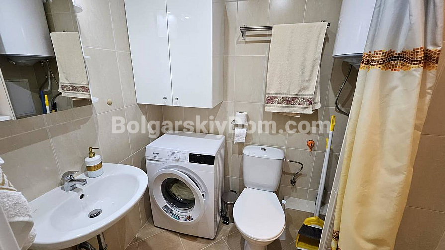 Das Team der Agentur Bolgarskiy Dom hat für Sie die perfekte Option mit einer seltenen Kombination von Vorteilen gefunden: Nähe zum Meer, ein einzugsfertiges Interieur und eine unglaublich niedrige Jahresgebühr! Wir präsentieren Ihnen ein gemütliches Apartment mit 59 qm im Komplex Aivazovsky Park in Pomorie. Die Wohnung befindet sich im dritten Stock, mit einem durchdachten Grundriss und moderner Ausstattung. Hier erwarten Sie ein geräumiges Wohnzimmer mit einem großen ausziehbaren Sofa sowie eine voll ausgestattete Küchenzeile: Herd, Dunstabzugshaube, Mikrowelle und viel Stauraum sind bereits vorhanden. Hochwertige Möbel und Haushaltsgeräte sind im Preis inbegriffen, und die großen Fenster füllen das Interieur in sanften Tönen mit natürlichem Licht. Die Wohnung ist komplett bezugsfertig!