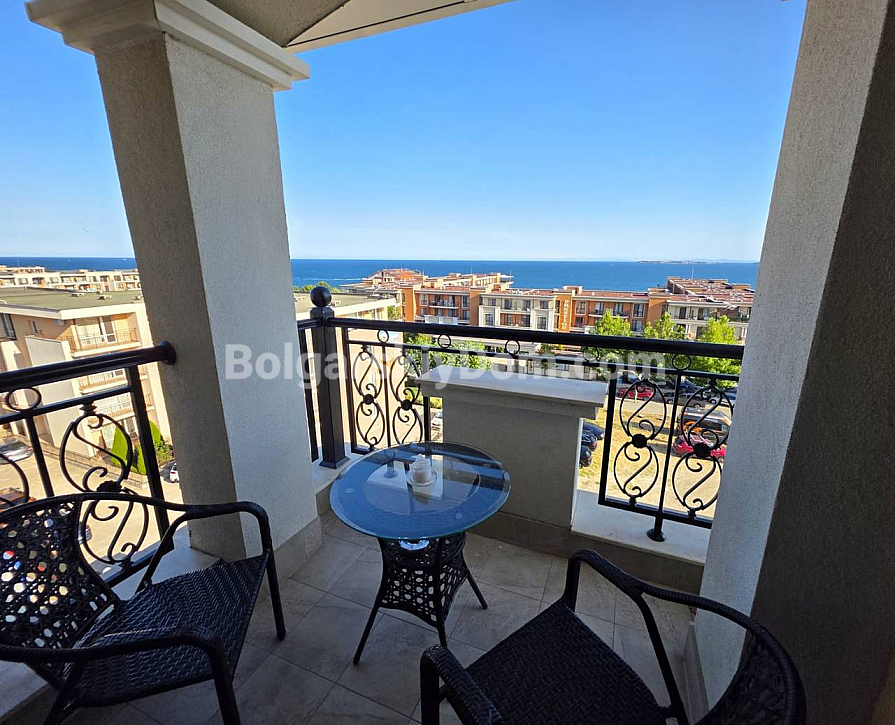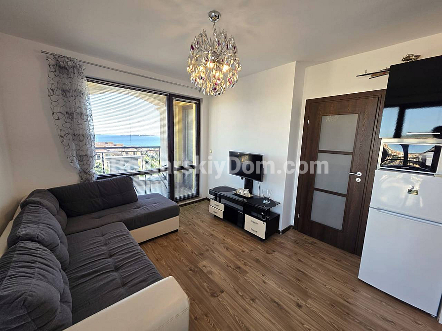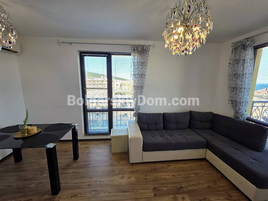 Im Katalog von Bolgarskiy Dom ist eine Premium-Immobilie mit atemberaubendem Meerblick erschienen! Im modernen Wohnkomplex Morski Bryag im prestigeträchtigen Ferienort Sweti Wlas wird eine Zweizimmerwohnung mit einer Fläche von 54 qm im sechsten Stock zum Verkauf angeboten. Die Wohnung ist vollständig möbliert und verfügt über ein stilvolles, modernes Interieur in hellen Tönen, durchflutet von Licht dank der Panoramafenster. Das Herzstück der Wohnung ist das Wohnzimmer mit Küchenbereich, ausgestattet mit glänzenden schwarzen Fronten und Einbaugeräten. Der Wohnbereich bietet ein Ecksofa, einen Fernseher und Zugang zu einem Balkon mit gemütlichem Tisch für den Morgenkaffee mit direktem Blick auf das Meer und den Komplex. Im Schlafzimmer gibt es ein großes Bett, viel Stauraum und große Fenster mit leichten Vorhängen. Beide Räume sind mit Klimaanlagen ausgestattet. Das Vorhandensein eines Aufzugs und die sofortige Bezugsfertigkeit machen dieses Objekt zu einer ausgezeichneten Wahl für komfortablen Urlaub oder dauerhaftes Wohnen.