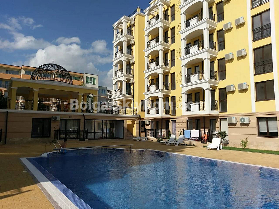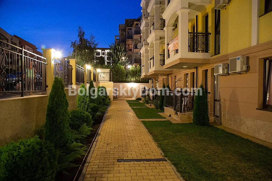 Der Komplex Morski Bryag zeichnet sich durch seine günstige Lage aus: zum Sandstrand sind es nur 250 Meter, und den berühmten Yachthafen Marina Dinevi erreicht man in 10 Minuten zu Fuß. Auf dem umzäunten Gelände gibt es ein Freibad, eine Sauna, ein Dampfbad, Parkplätze und Sicherheitsdienst. Die jährliche Wartungsgebühr beträgt 480 Euro, was durch die reiche Infrastruktur und die Premium-Lage vollständig gerechtfertigt ist.