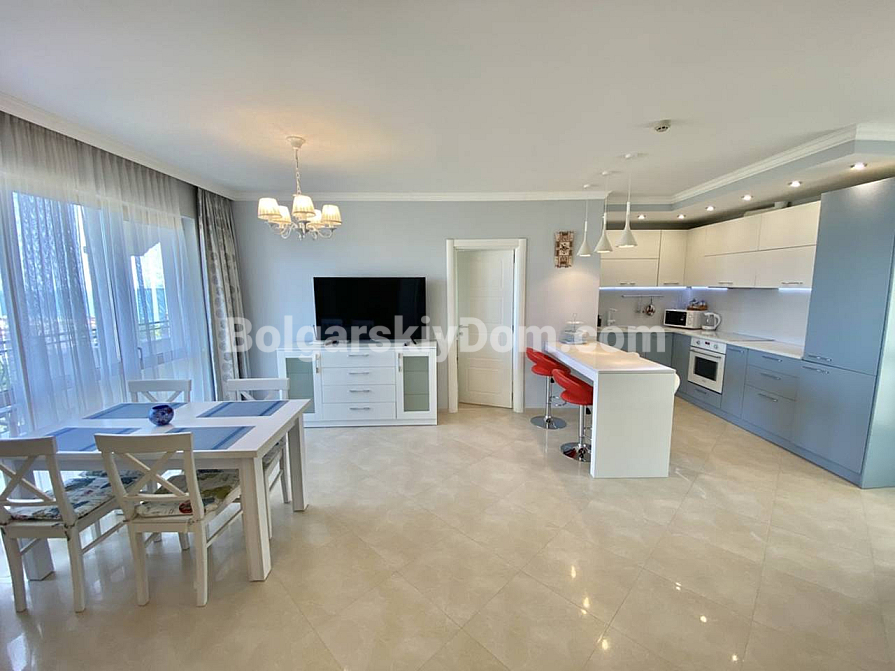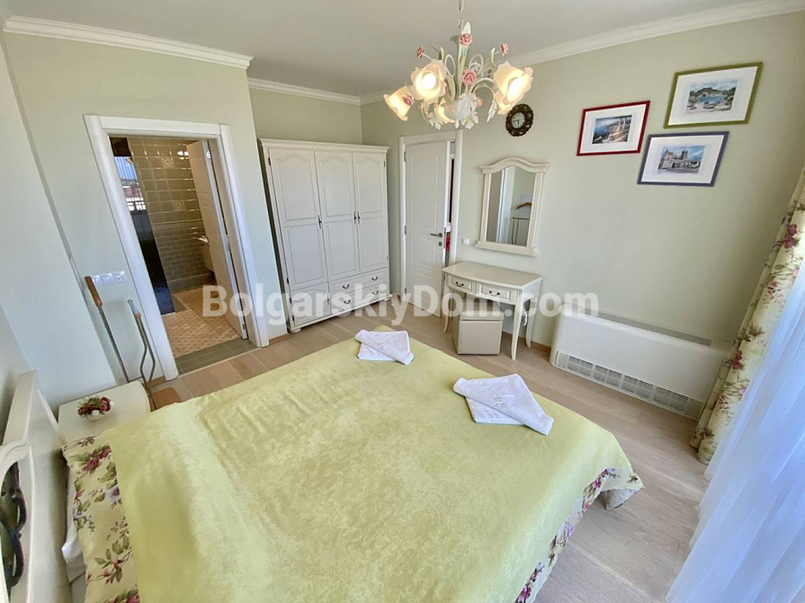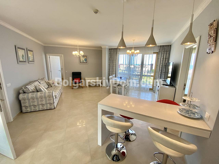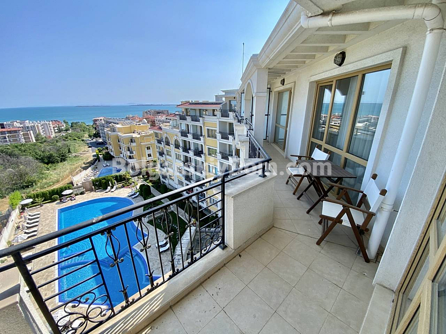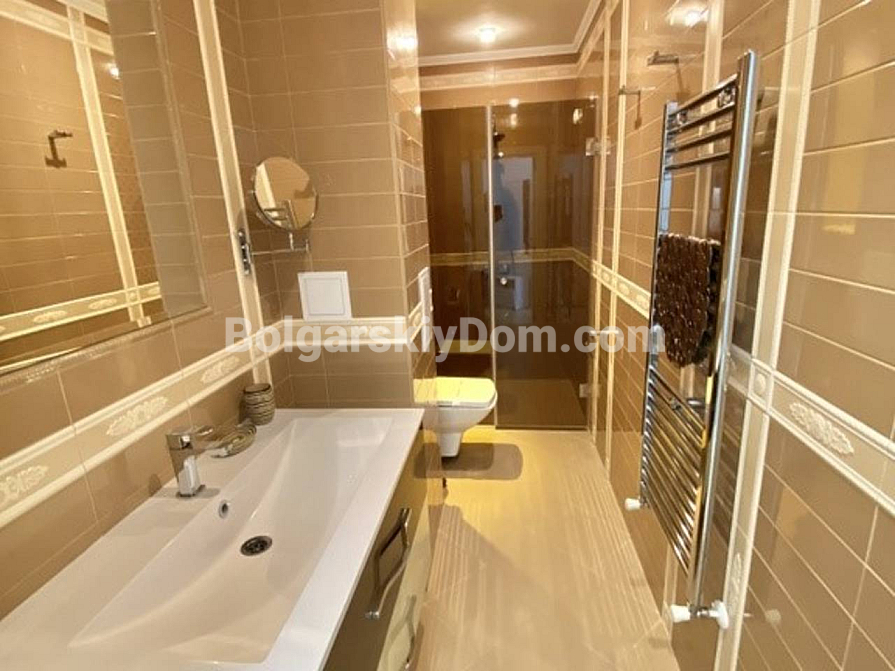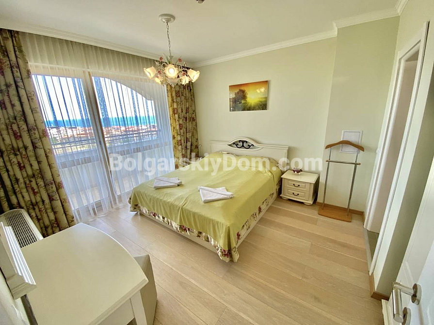 Im Katalog von Bolgarskiy Dom ist ein exklusives Objekt erschienen, das durch seine Größe und seine Premium-Lage beeindruckt. Wir bieten eine Dreizimmerwohnung im Elitekomplex Villa Florenz in Sveti Vlas mit atemberaubendem Meerblick an! Die Wohnung befindet sich im sechsten Stock und hat eine Gesamtfläche von 158,34 qm (einschließlich einer offenen Terrasse von 40,5 qm). Die Raumaufteilung umfasst einen Flur, ein Wohnzimmer mit Küchenbereich, zwei Schlafzimmer sowie zwei kombinierte Bäder mit italienischem Feinsteinzeug. Dank der Südausrichtung ist die Wohnung stets lichtdurchflutet. Von der Terrasse eröffnet sich neben dem Meer auch ein malerischer Blick auf die grünen Hügel des Balkangebirges (Stara Planina). Die Wohnung wird mit hochwertigen Möbeln und Haushaltsgeräten verkauft und ist mit Highspeed-Internet ausgestattet.