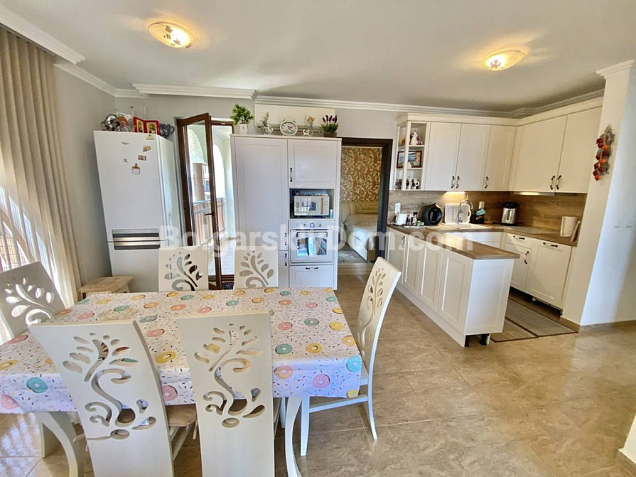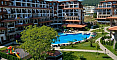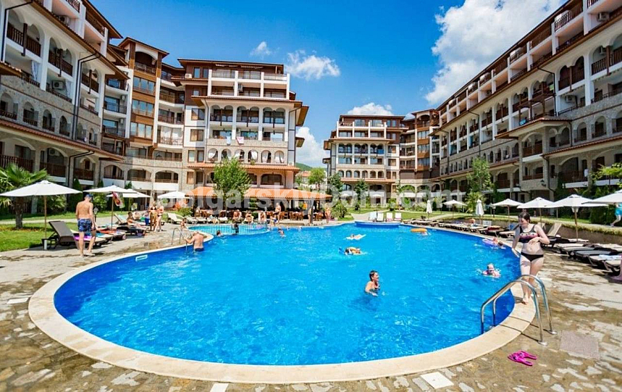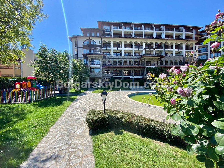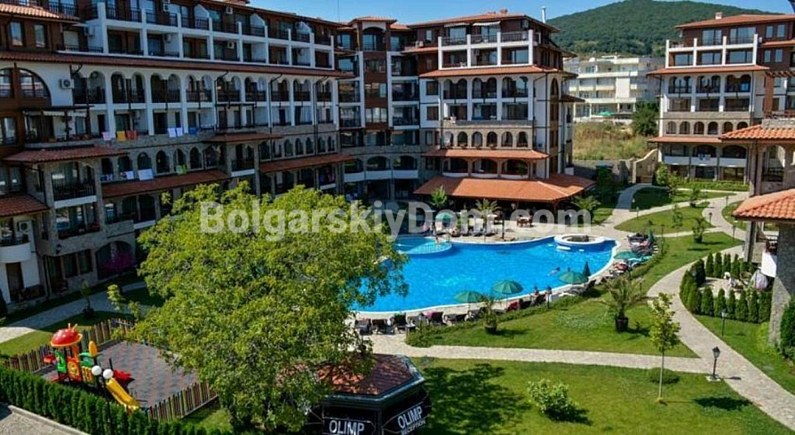 Der Komplex Olymp ist im gemütlichen Stil des „alten bulgarischen Hauses“ gestaltet und befindet sich im Herzen von Sveti Vlas – nur 250 Meter vom Meer und 500 Meter vom berühmten Yachthafen Marina Dinevi entfernt. Auf dem Gelände gibt es ein Restaurant, einen großen kombinierten Pool (300 qm), eine Tiefgarage und 24-Stunden-Sicherheitsdienst. Die gesamte Infrastruktur des zentralen Platzes ist zu Fuß erreichbar. Die jährliche Wartungsgebühr beträgt nur 12 EUR/qm – ein sehr günstiger Preis für dieses Maß an Komfort, Sicherheit und Fläche.