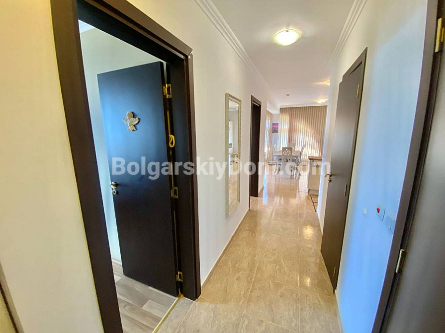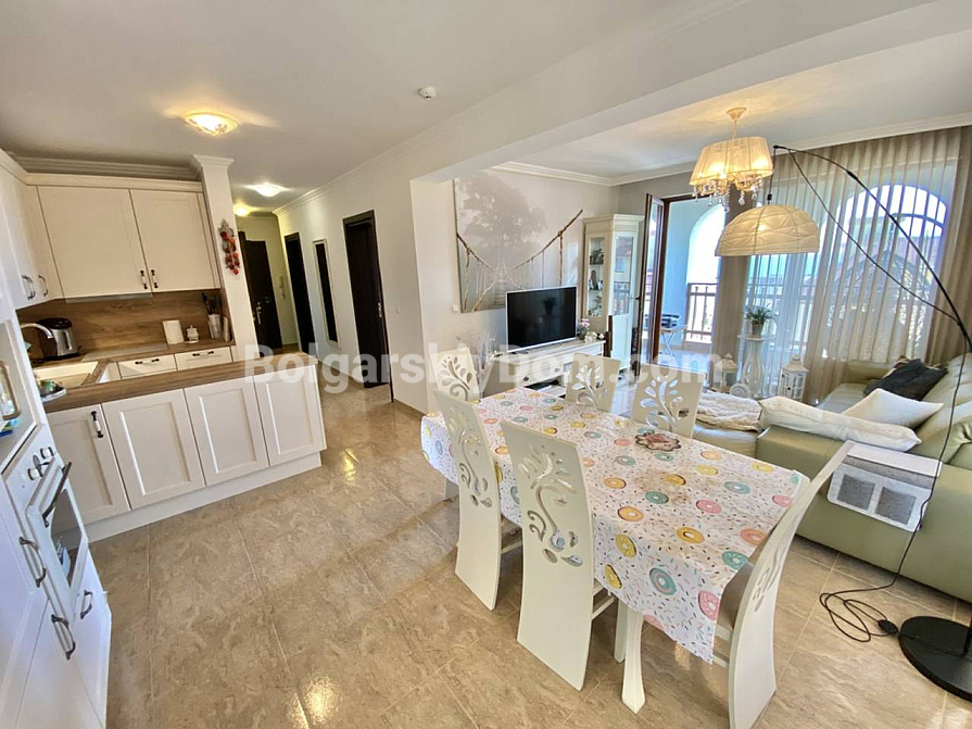 Neuheit in einem seltenen Format! Das Immobilienbüro Bolgarskiy Dom präsentiert ein wirklich außergewöhnliches Angebot: eine Vierzimmerwohnung (3 Schlafzimmer) im exklusiven Wohnkomplex Olymp! Diese Immobilie bietet alles für ein komfortables Leben am Meer: 129 qm Wohnfläche, einen herrlichen Meerblick sowie einen Stellplatz in der Tiefgarage und einen Abstellraum von 8 qm, die im Preis inbegriffen sind! Die Wohnung befindet sich im 5. Stock und ist ideal nach Südwesten ausgerichtet. Der Grundriss ist hochwertig gestaltet: ein großzügiges Wohnzimmer mit Küchenbereich, drei große Schlafzimmer und, was äußerst praktisch ist, drei Badezimmer mit Dusche. Von den beiden geräumigen Terrassen eröffnet sich ein atemberaubender Blick auf das Meer, die Berge und den Pool. Die Wohnung wird mit Möbeln und Geräten verkauft, und in jedem Zimmer ist eine Klimaanlage installiert. Eine perfekte Lösung für eine große und anspruchsvolle Familie.