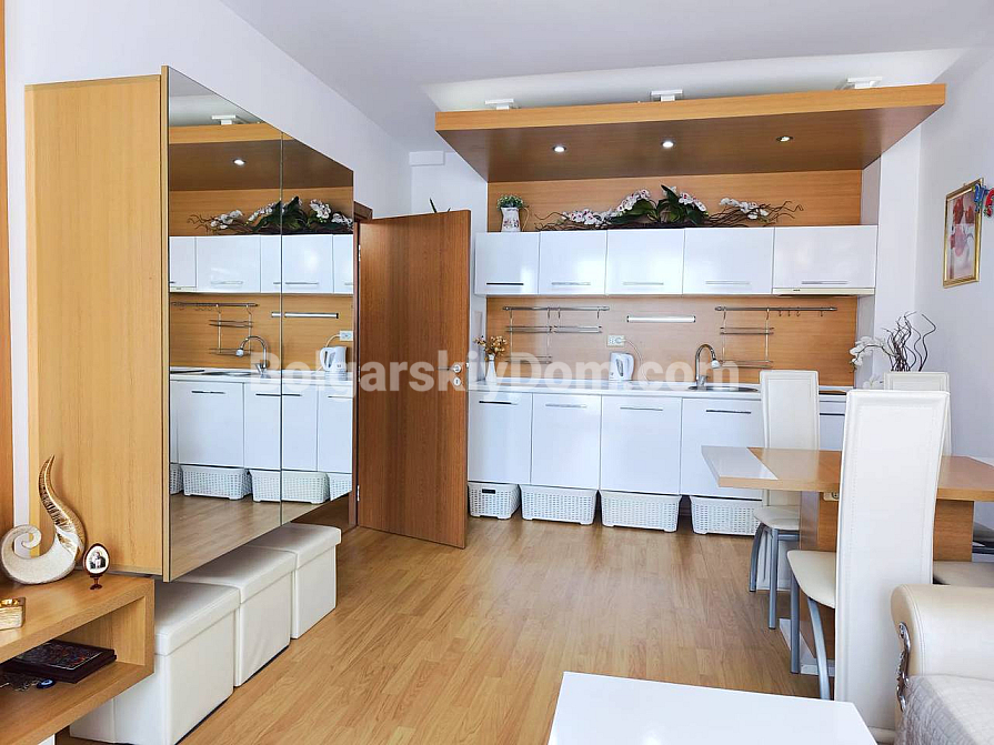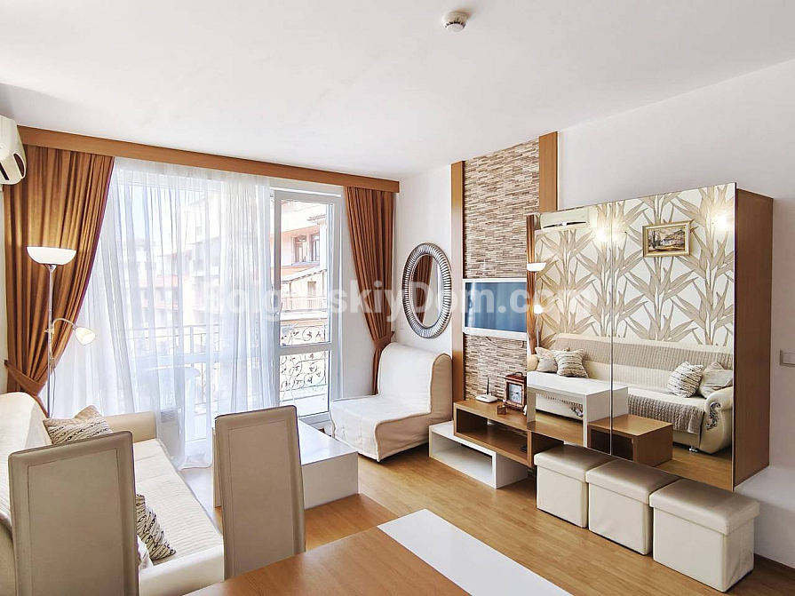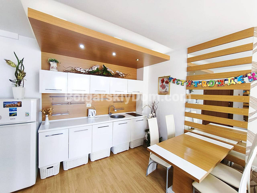Neu im aktuellen Katalog! Die Firma Bolgarskiy Dom bietet eine hervorragende Option für alle, die ein ideales Gleichgewicht zwischen Komfort, Infrastruktur und Qualität suchen! Zum Verkauf steht eine Zweizimmerwohnung mit einer Gesamtfläche von 63 qm in der Hauptphase des Premium-Wohnkomplexes Sweet Home – im absoluten Zentrum von Sonnenstrand, in einem Gebiet mit vorbildlicher Infrastruktur. Die Wohnung befindet sich im 4. Stock eines Gebäudes mit Aufzug und ist in ausgezeichnetem Zustand. Die Aufteilung umfasst einen Flur, ein Wohnzimmer mit Küchenbereich, ein separates Schlafzimmer, ein Badezimmer mit Duschkabine und einen Balkon. Die Wohnung wird mit hochwertigen Möbeln und Haushaltsgeräten verkauft. Rufen Sie uns an – wir führen Online- und Vor-Ort-Besichtigungen durch!