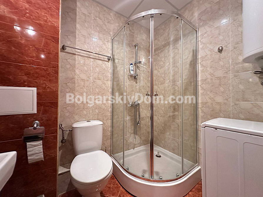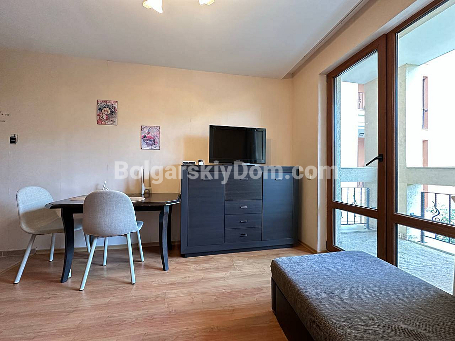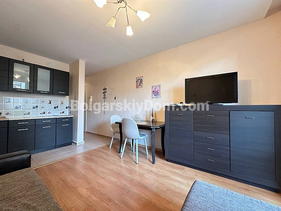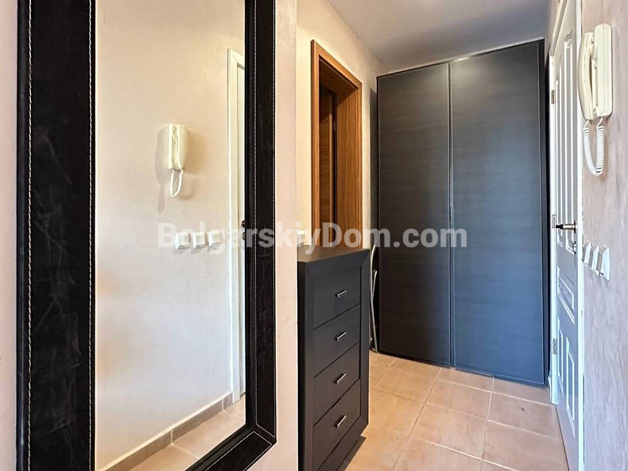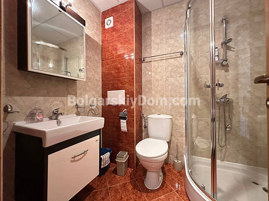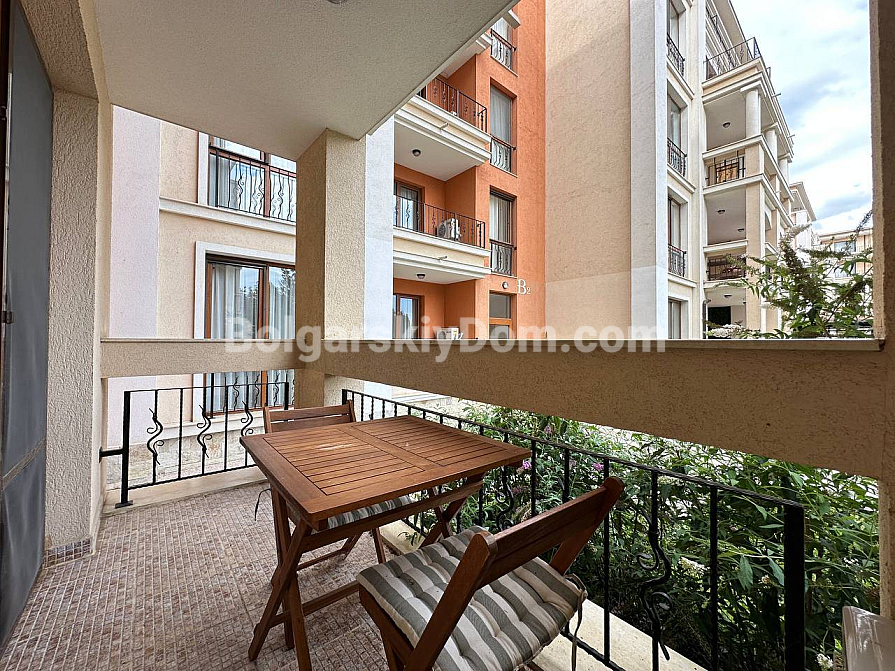 Der Komplex Prestige Fort Beach befindet sich in einzigartiger Lage direkt an der ersten Linie, an der Grenze zwischen Sveti Vlas und dem nördlichen Teil von Sonnenstrand, und bietet somit Zugang zur Infrastruktur beider Ferienorte. Das abgeschlossene Gelände bietet alles für einen luxuriösen Aufenthalt: einen idealen 30-Meter-Pool, Fitnessraum, Massagesalon, Restaurant mit Sommerterrasse sowie Tennisplatz und Fußballfeld. Den Eigentümern steht ein kostenloser Parkplatz zur Verfügung, während der 24-Stunden-Service und die Sicherheitsdienste für ein sorgenfreies Leben sorgen. Das Gebiet ist hervorragend entwickelt, mit bequemen Busverbindungen nach Nessebar und Burgas, was den hohen Status dieses Ortes unterstreicht. Wartungsgebühr: 15.5 Euro.