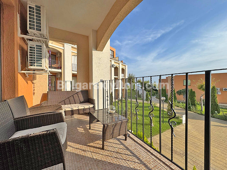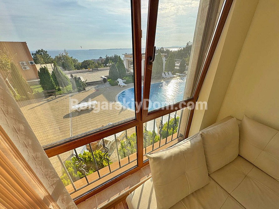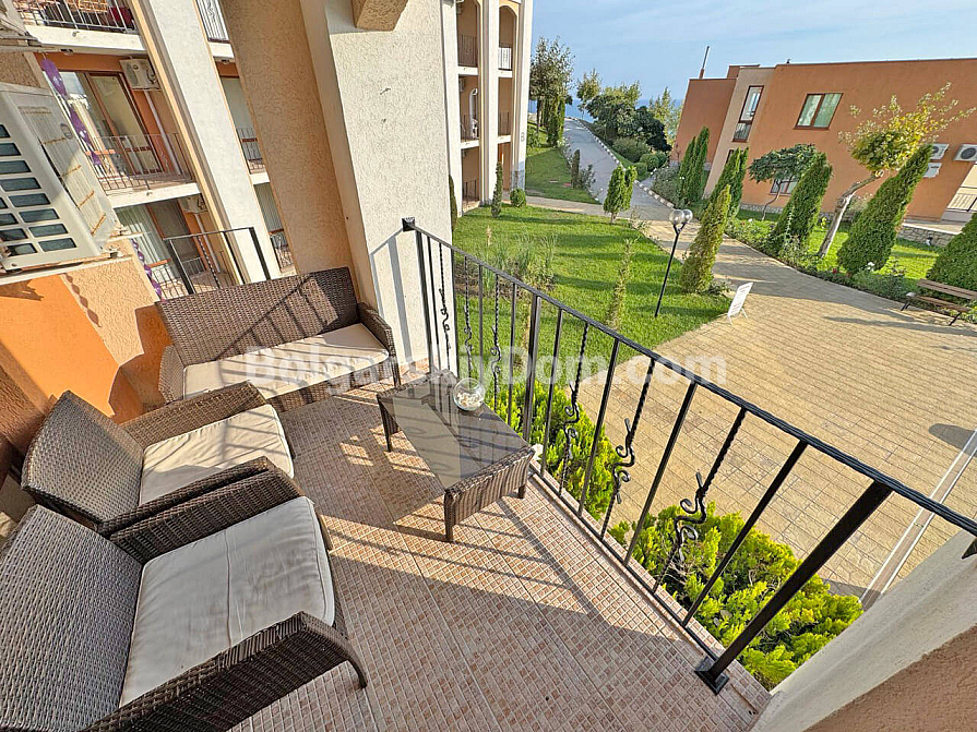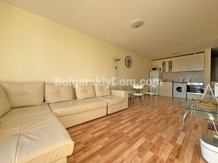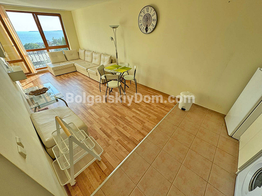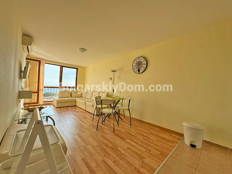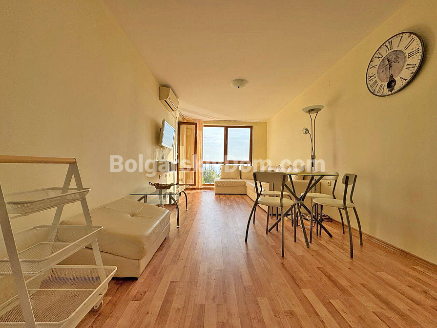 Ein echtes Berg-und-Meer-Resort in einem! Bolgarskiy Dom präsentiert eine exklusive Drei-Zimmer-Wohnung im Komplex Sea Fort Club. Die Wohnung mit einer Fläche von 77 m² befindet sich im zweiten Stock und bietet ein besonderes Highlight: eine großzügige Terrasse mit atemberaubendem Meerblick. Die Raumaufteilung ist äußerst funktional – ein geräumiges Wohn- und Küchenzimmer sowie ein gemütliches Schlafzimmer, beide mit Zugang zum Balkon. Die Wohnung wird komplett möbliert und mit Haushaltsgeräten verkauft, sodass sie sofort bezugsfertig ist.