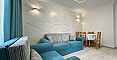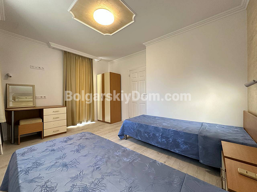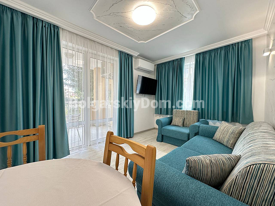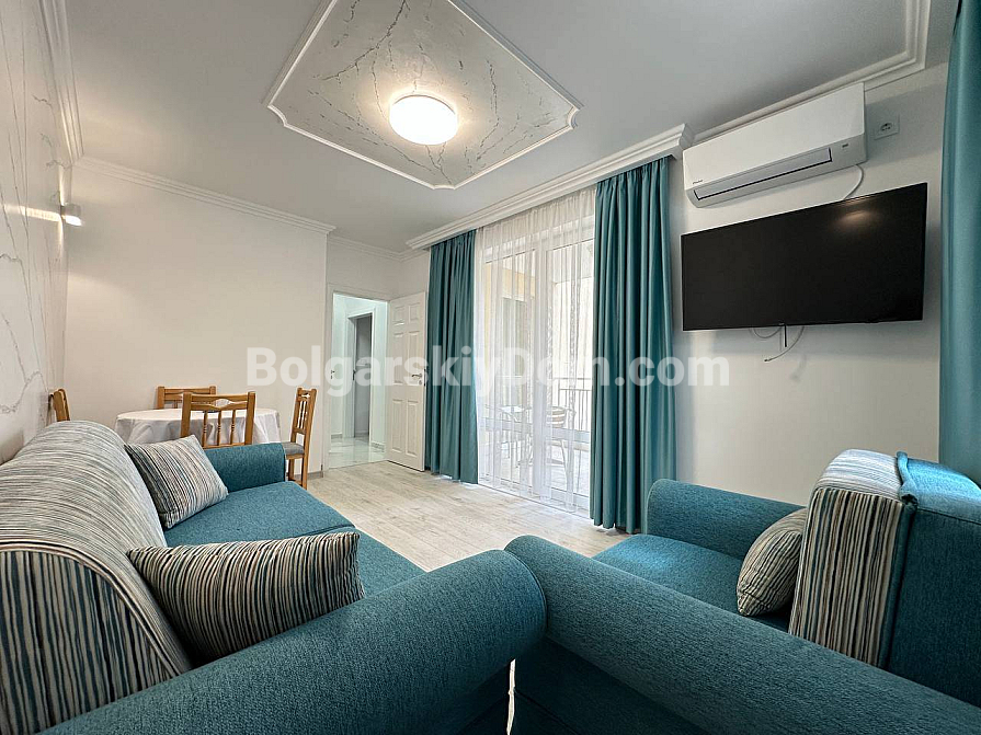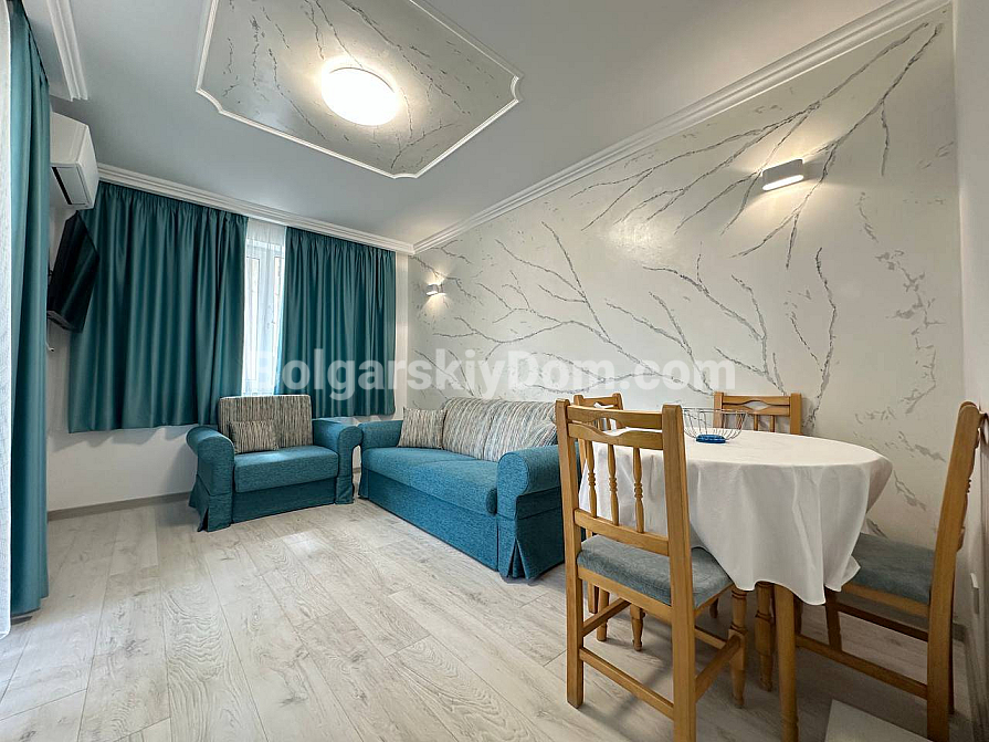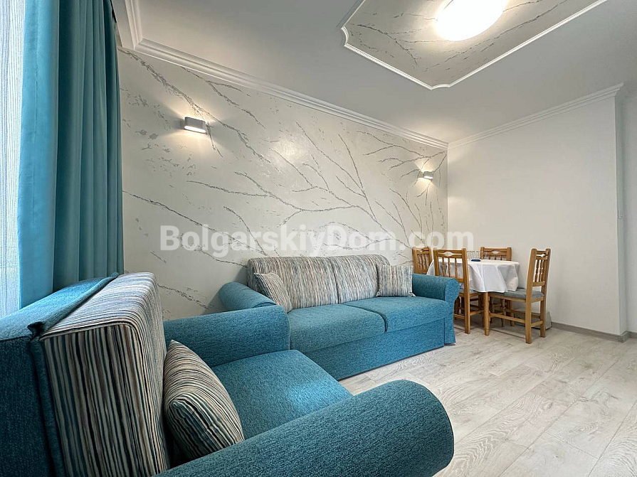 Bolgarskiy Dom bietet eine stilvolle Zweizimmerwohnung mit 60 m² im Sea Dreams-Komplex an! Die Wohnung besticht durch ihr Interieur: Ein geräumiges Wohnzimmer in leuchtenden Türkistönen, ergänzt durch eine dekorative Wand und einen Essbereich, während die moderne Küche vollständig ausgestattet ist, einschließlich Backofen und Waschmaschine. Das Schlafzimmer ist hell und gemütlich, mit einem großen Fenster. Dies ist eine vollständig fertiggestellte Wohnung mit funktionalem Grundriss, die sofortiges komfortables Wohnen ermöglicht. Jede Ecke wirkt wie ein Fotospot. Beeilen Sie sich, um einen Besichtigungstermin zu reservieren!