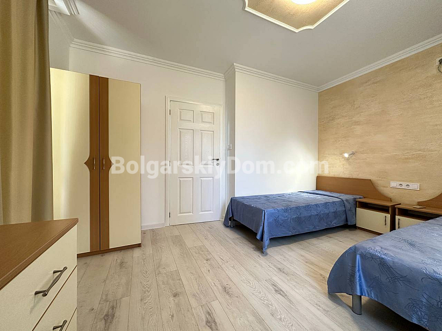 Der Wohnkomplex Sea Dreams besteht aus vier separaten Gebäuden, die sich an einem sehr günstigen Standort befinden: nur 600 Meter vom Sandstrand entfernt, während 24-Stunden-Supermärkte und eine Apotheke innerhalb von 100 Metern liegen. Das Gelände ist begrünt, gesichert und bietet alles für den Sommerfreizeit: einen Pool mit Kinderbereich und ein gemütliches Café. Dank der gut entwickelten städtischen Infrastruktur in der Umgebung (Wasserpark, Restaurants, Clubs) und der Lage des Komplexes ist er nicht nur für Urlaub, sondern auch für ganzjähriges Wohnen ideal. Die jährliche Wartungsgebühr beträgt 14 Euro pro Quadratmeter.