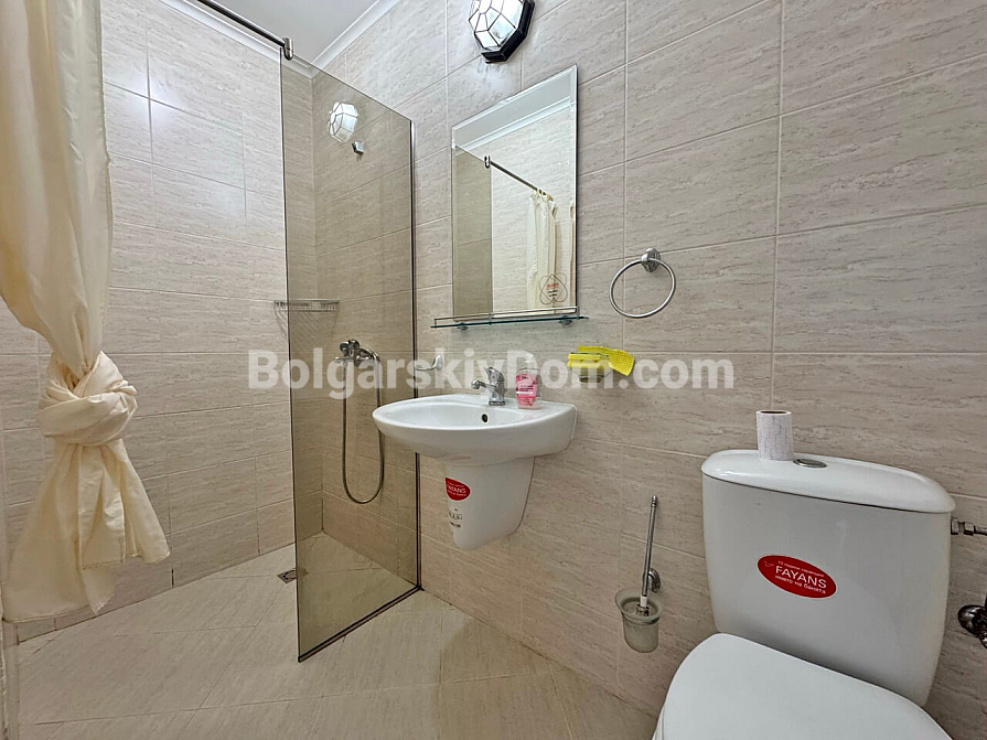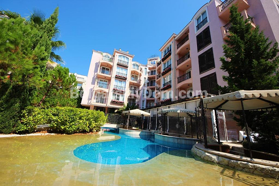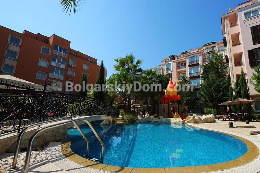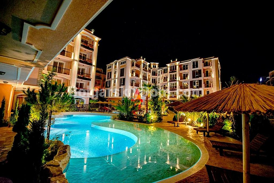 Der Komplex *Romance Marine* liegt in einem praktischen Teil von Sunny Beach: nur 400 Meter vom breiten Sandstrand entfernt — ein 5–7-minütiger gemütlicher Spaziergang. Das Gelände bietet eine tolle Atmosphäre zum Entspannen: großer Pool mit Wasserrutsche und Kinderbereich, Pavillons und Ruhebereiche umgeben von Grün. Die Lage ist ideal zum Wohnen: ein ganzjähriger Supermarkt in der Nähe, eine Bushaltestelle in zwei Minuten und die historische Altstadt von Nessebar nur 20 Minuten zu Fuß. Eine perfekte Kombination aus Komfort, Nähe zum Meer und hervorragender Infrastruktur bei einer angemessenen Wartungsgebühr von 15 Euro pro Quadratmeter.