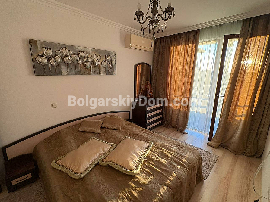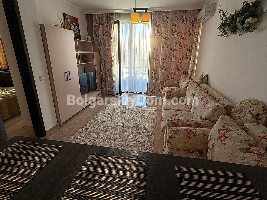 Verpassen Sie diese Gelegenheit nicht! Bolgarskiy Dom präsentiert einen luxuriösen Start in der prestigeträchtigsten Gegend des Ferienortes. Im Komplex Olymp steht eine großzügige Zwei-Zimmer-Wohnung mit einer Fläche von 69 qm zum Verkauf, gelegen im fünften Stock. Vergessen Sie Renovierungen – das Apartment befindet sich in ausgezeichnetem Zustand, ist komplett mit stilvollen Möbeln eingerichtet und mit hochwertigen Haushaltsgeräten ausgestattet. Der funktionale Grundriss umfasst einen Eingangsbereich, ein Wohnzimmer mit Küchenzone, ein separates Schlafzimmer, ein modernes Badezimmer mit Duschkabine und einen privaten Balkon mit Sitzecke. Eine bezugsfertige Wohnung, die maximalen Komfort bietet.