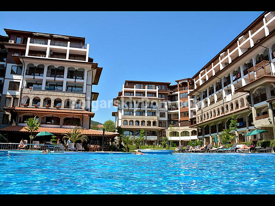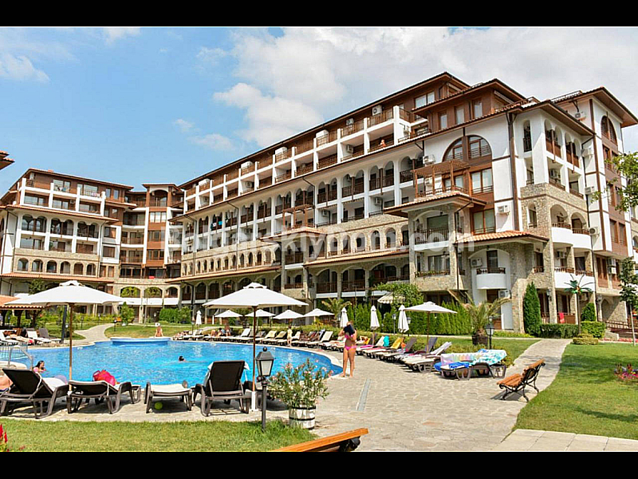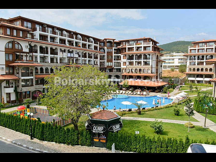 Der Komplex Olymp macht seinem Namen alle Ehre und liegt im exklusivsten Teil von Sveti Vlas. Die Sandstrände und das saubere Meer sind nur 300 Meter entfernt – ein kurzer, angenehmer Spaziergang. Die Infrastruktur des Komplexes ist auf luxuriöses Wohnen ausgelegt: eine wunderschön angelegte Gartenanlage mit elegantem Restaurant, herrlichem Außenpool mit Liegebereichen, Sauna, Whirlpool und Kinderspielplatz. Alle wichtigen Einrichtungen (Supermarkt, Geldautomat, Autovermietung) befinden sich direkt neben dem Gebäude. Trotz des hohen Serviceniveaus und der exklusiven Lage beträgt die jährliche Wartungsgebühr nur 8 Euro pro Quadratmeter.