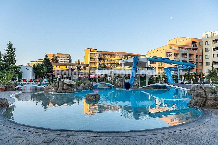 Der Komplex Trakia Plaza liegt in einem ruhigen, aber privilegierten Teil von Sonnenstrand und garantiert eine erholsame Atmosphäre, während das Zentrum des Resorts nur 15 Gehminuten entfernt ist. Zum Sandstrand sind es lediglich 400 Meter – ideal, um in Meeresnähe zu wohnen, aber ohne nächtlichen Lärm. Die Lage überzeugt durch eine hervorragend entwickelte, ganzjährig nutzbare Infrastruktur: Supermärkte, Apotheken, Banken und vor allem der Busbahnhof befinden sich in unmittelbarer Nähe, von dem aus man jeden Teil Bulgariens erreichen kann. Die Nähe zu wichtigen Verkehrsverbindungen und zum Flughafen Burgas (28 km) macht dieses Apartment ideal sowohl für den Sommerurlaub als auch für das dauerhafte Wohnen.