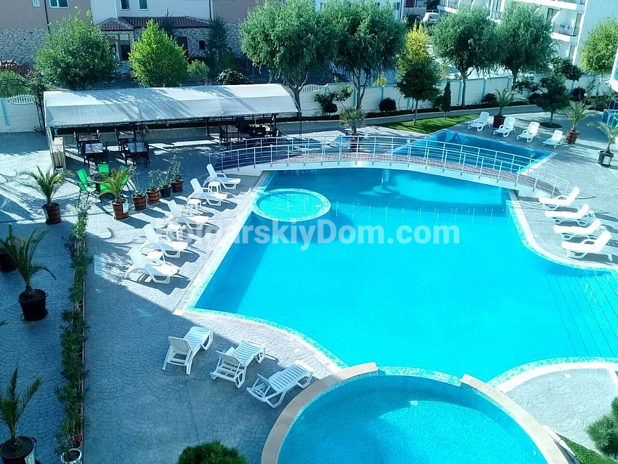 Der Komplex Odyssey liegt im malerischen Viertel Aurelia – genau zwischen dem gemütlichen Ort Ravda und dem neuen Teil des historischen Nessebar. Diese Gegend ist von viel Grün umgeben und schafft eine besonders angenehme Atmosphäre. Zum Sandstrand sind es nur 300 Meter – ideal für tägliche Spaziergänge. Auf dem Gelände gibt es zwei große Pools mit Sonnenliegen und einen separaten Kinderpool. Die jährliche Wartungsgebühr beträgt 12 €/m², und das Meer ist nur 300 Meter entfernt.