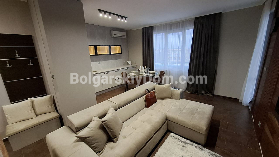 Vergessen Sie Kompromisse – dieses Apartment steht für Komfort, der auch für das dauerhafte Wohnen geeignet ist, selbst wenn Sie es nur als Feriendomizil nutzen möchten. Bolgarskiy Dom präsentiert eine stilvolle und ausgesprochen geräumige Dreizimmerwohnung im modernen Wohnkomplex Odyssey. Die Fläche von 110 m² ist für eine Ferienimmobilie außergewöhnlich. Die Wohnung befindet sich im 3 Stock eines Gebäudes mit Aufzug und verfügt über eine perfekte Raumaufteilung: ein helles Wohnzimmer mit Küche und Essbereich, zwei vollwertige Schlafzimmer und – besonders praktisch für Familien – zwei Badezimmer. Der Apartment wird vollständig möbliert und mit allen Geräten verkauft, befindet sich in ausgezeichnetem Zustand und bietet einen Balkon mit gemütlicher Sitzecke.