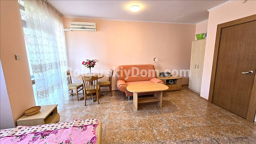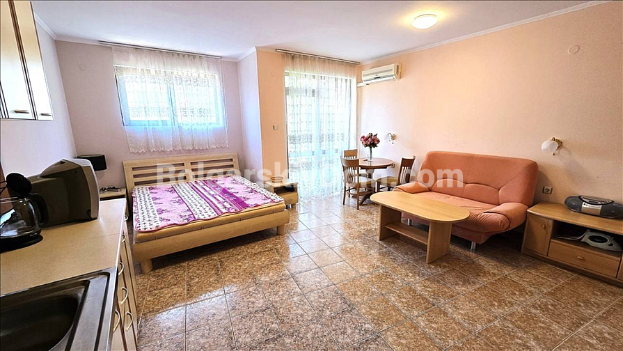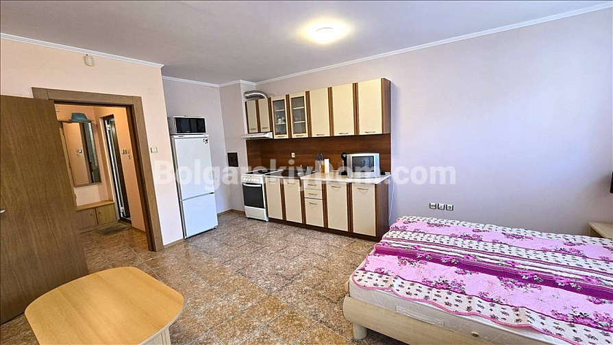 Nicht einfach ein Studio, sondern ein sofort bezugsfertiges „Einziehen und Wohlfühlen“-Paket mit rekordniedrigen Nebenkosten! Die Firma Bolgarskiy Dom präsentiert ein gemütliches Studio im Komplex Amelia. Das Apartment befindet sich im vierten Stock, ist gepflegt und geschmackvoll eingerichtet. Der geräumige und helle Raum ist mit einer Küchenzeile kombiniert, und der praktische Grundriss umfasst ein Badezimmer und einen eigenen Balkon. Die Wohnung ist vollständig bezugsfertig und ideal für den sofortigen Einzug oder den Beginn der Vermietungssaison. Gesamtfläche: 42 qm.