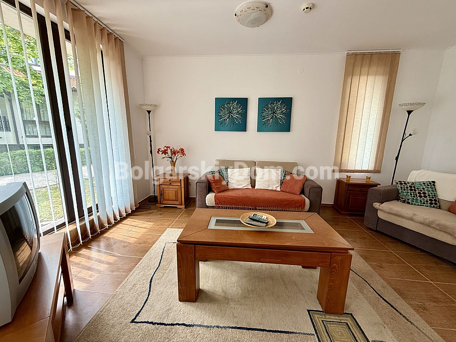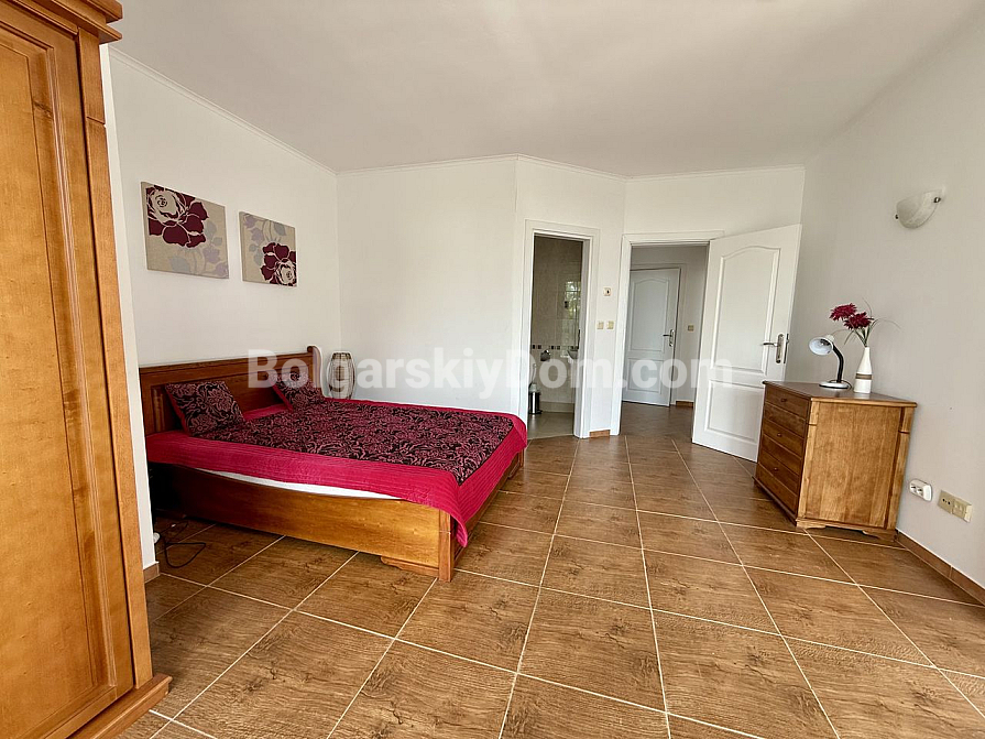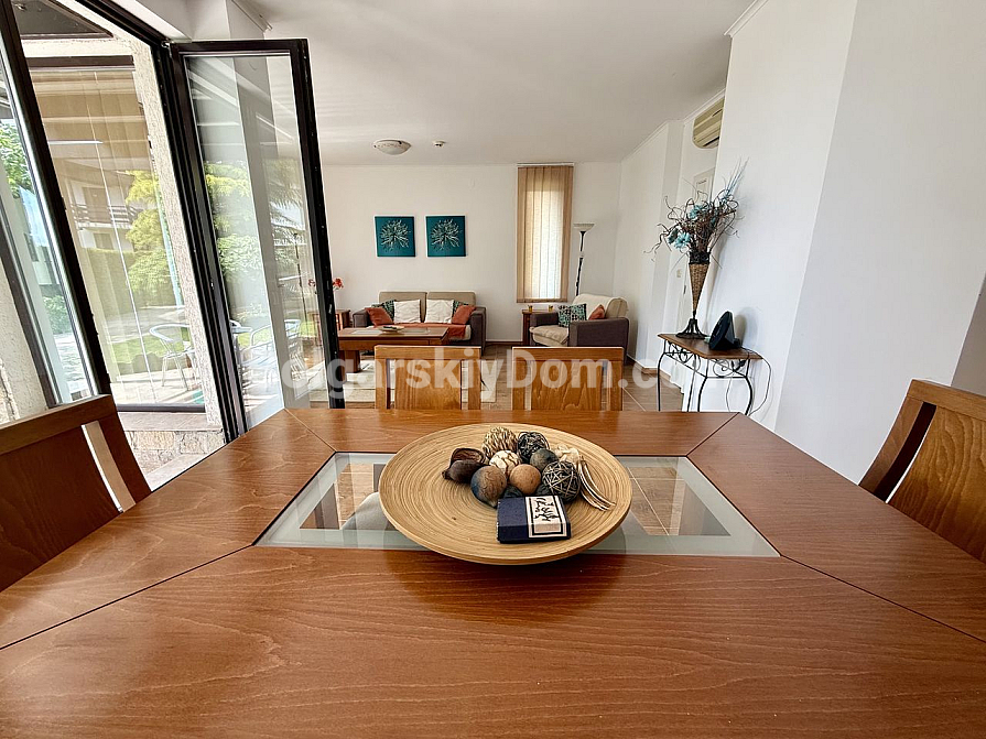 Vergessen Sie enge Ferienwohnungen – heute bieten wir ein Zuhause an, das in seiner Größe einem Landhaus gleichkommt. Bolgarskiy Dom präsentiert ein äußerst seltenes Angebot: ein zweistöckiges Apartment (Maisonette) mit einer Fläche von 133 qm im Komplex Bay View Villas. Diese Immobilie befindet sich in den ersten beiden Etagen, verfügt über die Nutzungsgenehmigung (Akt 16) und besticht durch einen durchdachten, fast ländlichen Grundriss: zwei Schlafzimmer, ein geräumiges Wohnzimmer, zwei Badezimmer plus separates WC, Hauswirtschaftsraum und Abstellraum. Das Beste: Die Wohnung wird komplett möbliert und ausgestattet verkauft und verfügt über eine eigene Veranda mit Zugang zum Innenhof.