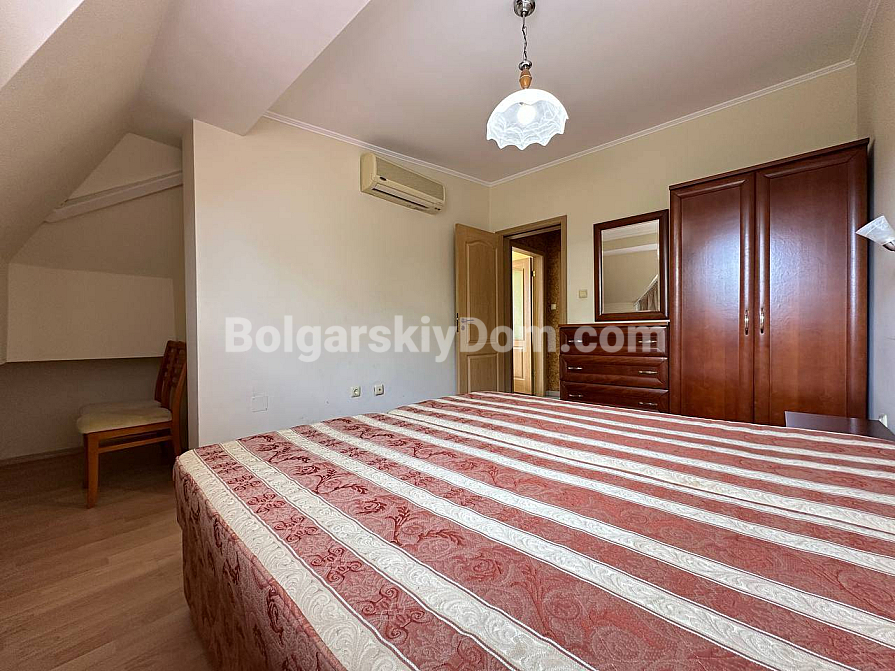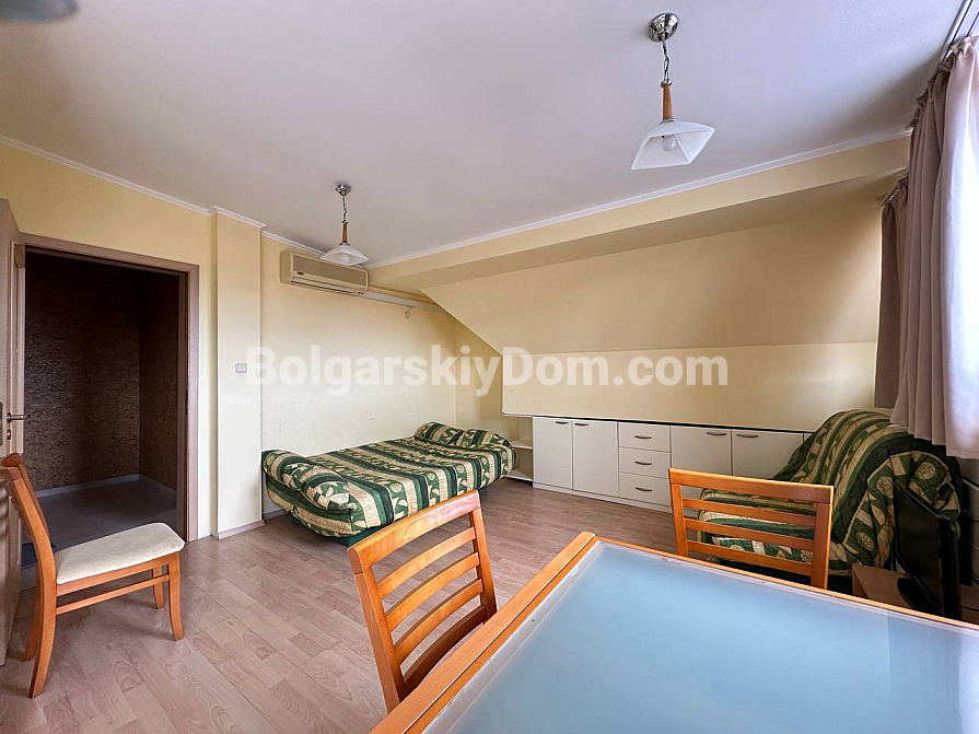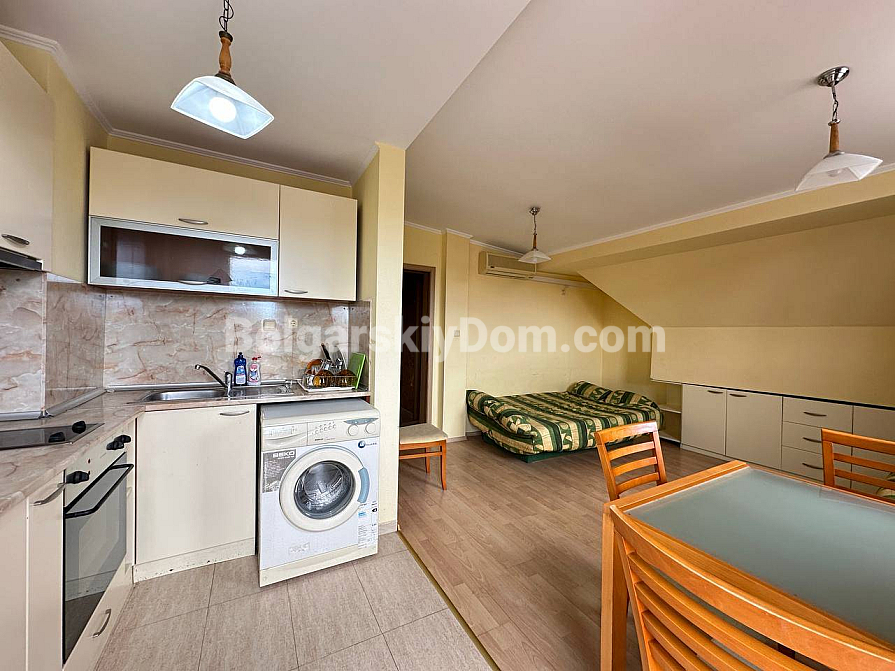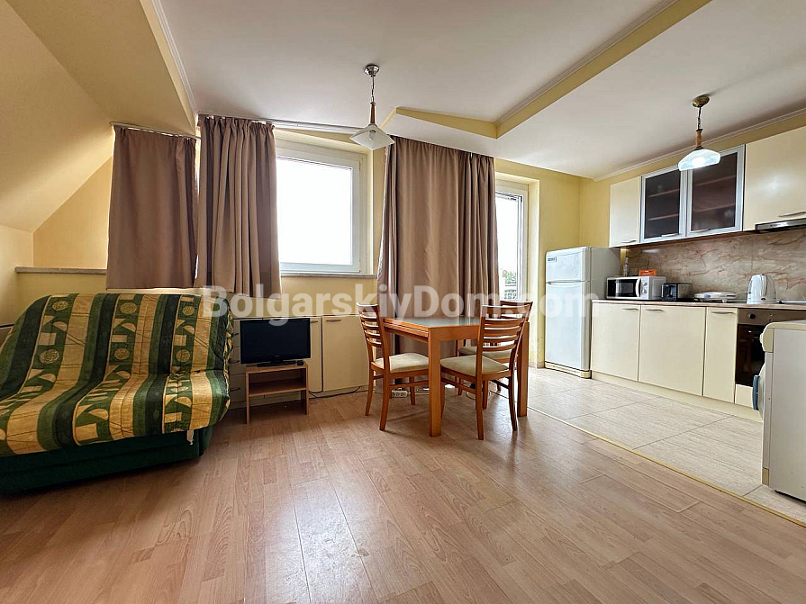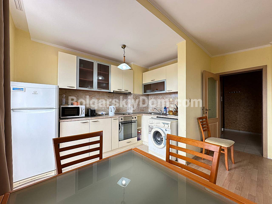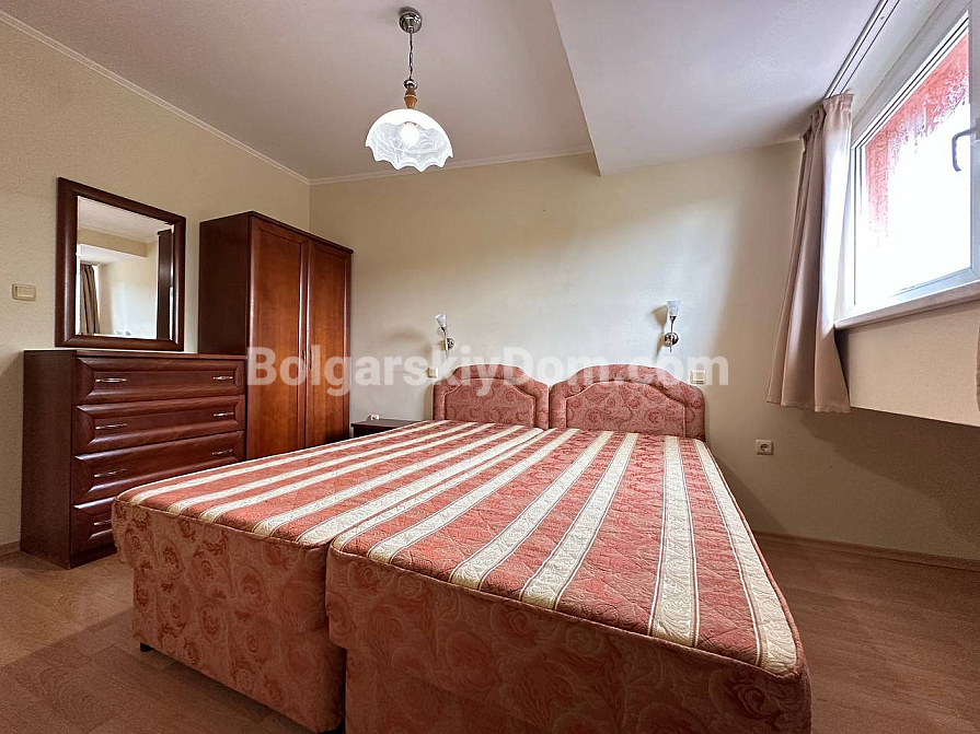 Wenn Sie nicht einfach nur eine Wohnung, sondern ein richtiges, gemütliches Zuhause mit Wärme und Geborgenheit im Herzen des Ferienortes suchen, ist dieses Angebot genau das Richtige für Sie. Bolgarskiy Dom präsentiert eine neue Ergänzung im Katalog – eine geräumige Zwei-Zimmer-Wohnung mit einer Fläche von 70 qm im Komplex Sunny Fort. Die Wohnung zeichnet sich durch ein helles und gut durchdachtes Interieur aus: Wohnzimmer und Küche sind zu einem harmonischen, offenen Raum kombiniert. Der Küchenbereich ist vollständig mit allen notwendigen Haushaltsgeräten ausgestattet – einschließlich Herd, Backofen und sogar Waschmaschine. Alle Möbel sind aus Naturholz in warmen Farbtönen gefertigt, was eine behagliche Atmosphäre schafft. Die Wohnung ist komplett bezugsfertig und wartet auf ihre neuen Besitzer.