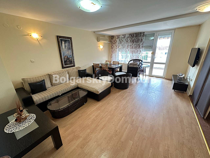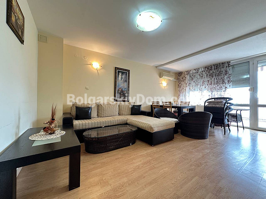 Warum zwischen Preis und Komfort wählen, wenn man beides haben kann? Die Immobilienagentur Bolgarskiy Dom präsentiert eine äußerst komfortable Drei-Zimmer-Wohnung mit einer Fläche von 115 qm im Komplex Sunny Fort. Die Wohnung befindet sich im vierten Stock und verfügt über einen perfekten, funktionalen Grundriss: ein geräumiges Wohnzimmer mit einer gemütlichen Eckcouch und einer Sitzecke sowie zwei helle, separate Schlafzimmer. Die Küche ist vollständig mit modernen Haushaltsgeräten ausgestattet. Ein großer Vorteil für Familien ist das Vorhandensein von zwei vollwertigen Badezimmern, was den Wohnkomfort erheblich steigert. Die Wohnung ist komplett möbliert und bezugsfertig.