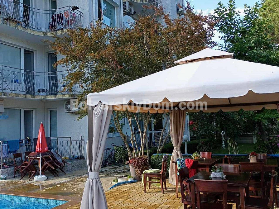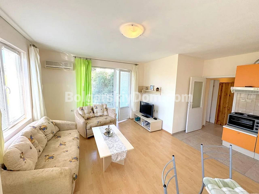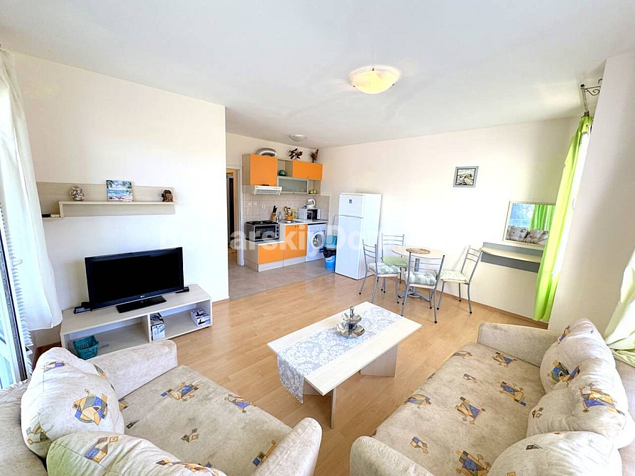 Die Firma Bolgarskiy Dom bietet gemütliche Apartments mit einem Schlafzimmer im Komplex Akrotiria an, der sich in der historischen Stadt Nessebar befindet. Die Wohnung hat eine Fläche von 57 qm und liegt im 2. Stock eines vierstöckigen Gebäudes. Die Raumaufteilung umfasst einen Flur, ein geräumiges Wohnzimmer mit Küchenbereich, ein separates Schlafzimmer, ein Badezimmer und eine Terrasse mit schönem Blick auf den Park und das Meer. Das Apartment ist komplett möbliert und mit Geräten ausgestattet, sodass man sofort einziehen oder es vermieten kann. Die Anlage ist fertiggestellt und verfügt über Akt 16. Eine ausgezeichnete Wahl für Dauerwohnsitz oder Vermietung – rufen Sie uns an!
