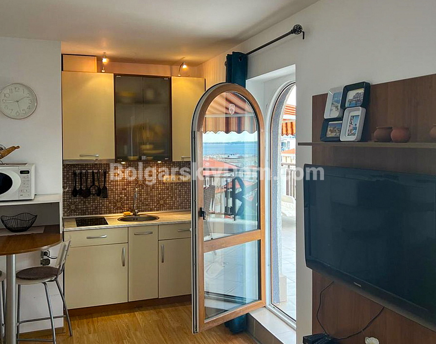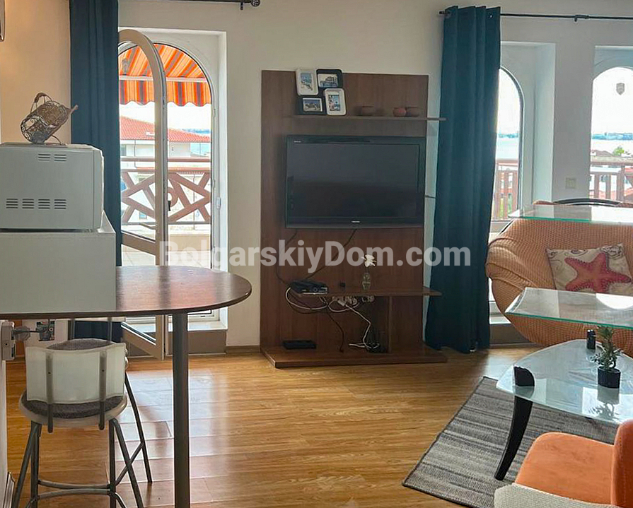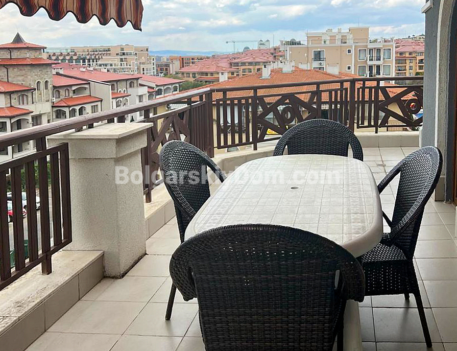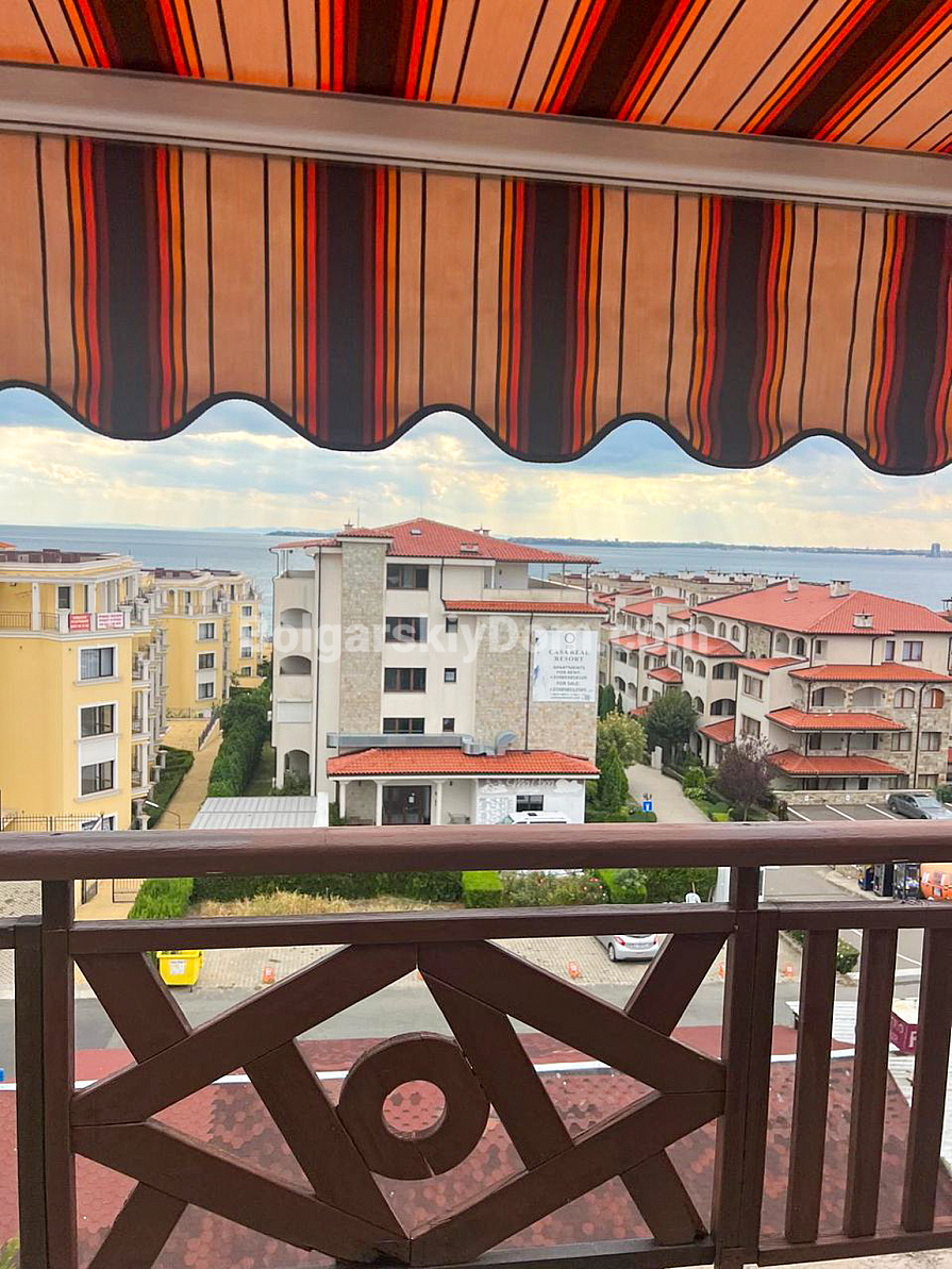 Neue Ergänzung im Katalog der Apartments mit Meerblick! Atemberaubende Aussicht in der gefragtesten Lage – ein Apartment für Sie und Ihre Investition! Zum Verkauf steht eine großzügige Zweizimmerwohnung mit einer Fläche von 99 qm im Komplex Royal Palm in Sveti Vlas. Die Wohnung befindet sich im 6. (obersten) Stockwerk und verfügt über ein gemütliches, wohnliches Interieur. Sie ist vollständig möbliert und ausgestattet, einschließlich aller Haushalts- und Elektronikgeräte. Das Hauptmerkmal ist die große Terrasse mit Markise, von der sich ein herrlicher Panoramablick auf das Meer eröffnet.