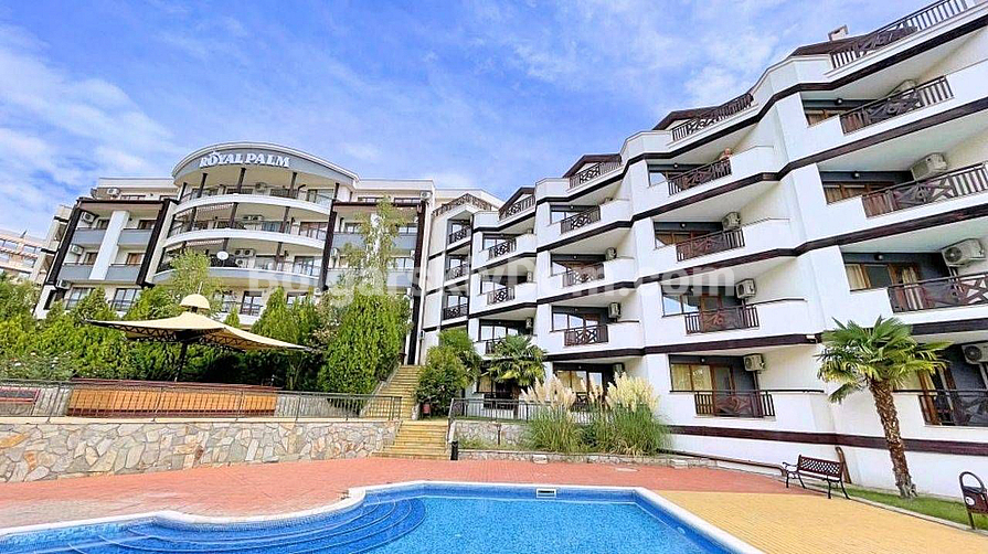 Der Komplex Royal Palm liegt im prestigeträchtigen Viertel Yurta in Sveti Vlas, nur 250 Meter vom Meer entfernt. Diese Lage vereint die Nähe zum Strand mit der Ruhe eines Wohngebiets. Die Anlage bietet gepflegte Wohnungen, die sich sowohl für den Sommerurlaub als auch für das ganzjährige Wohnen eignen – typisch für Immobilien in Sveti Vlas. Auf dem Gelände befinden sich ein Swimmingpool und Entspannungszonen, und die niedrige jährliche Wartungsgebühr von nur 10 Euro pro Quadratmeter macht das Angebot wirtschaftlich attraktiv. Die Wohnung ist komplett bezugsfertig und erfordert keine zusätzlichen Investitionen. Kontaktieren Sie Ihren Bolgarskiy Dom Agenten!