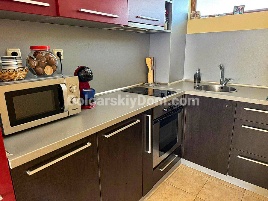 Der Villa Sofia-Komplex liegt im zentralen Teil von Sonnenstrand in einer wunderbaren, gut angebundenen Gegend, umgeben von Grün und Bäumen, nur 500 Meter vom Meer entfernt. Ein großer Vorteil für Eigentümer: Es gibt keine Wartungsgebühr, was erhebliche Einsparungen bei den jährlichen Ausgaben ermöglicht. In der Nähe befinden sich ein Park und alle notwendigen städtischen Infrastrukturen: Lebensmittelgeschäfte, eine Klinik und Haltestellen. Der Komplex selbst ist ein solides, fertiggestelltes Gebäude (Act 16, Baujahr 2008) mit einem geschlossenen Gelände, Aufzug, Sicherheit und eigenem Parkplatz. Außerdem gibt es ein Freibad mit Kinderbereich, Erholungsflächen und ein Restaurant, was die Attraktivität der Immobilie für Mieter erhöht.