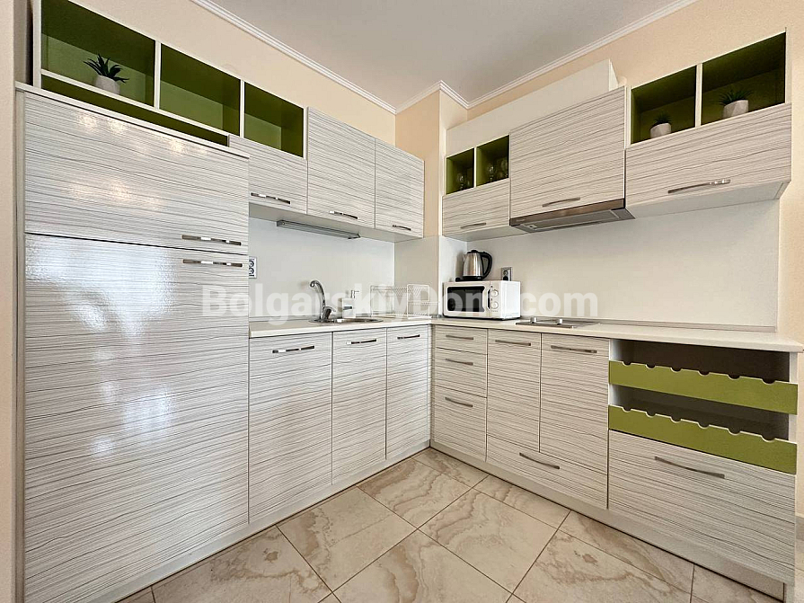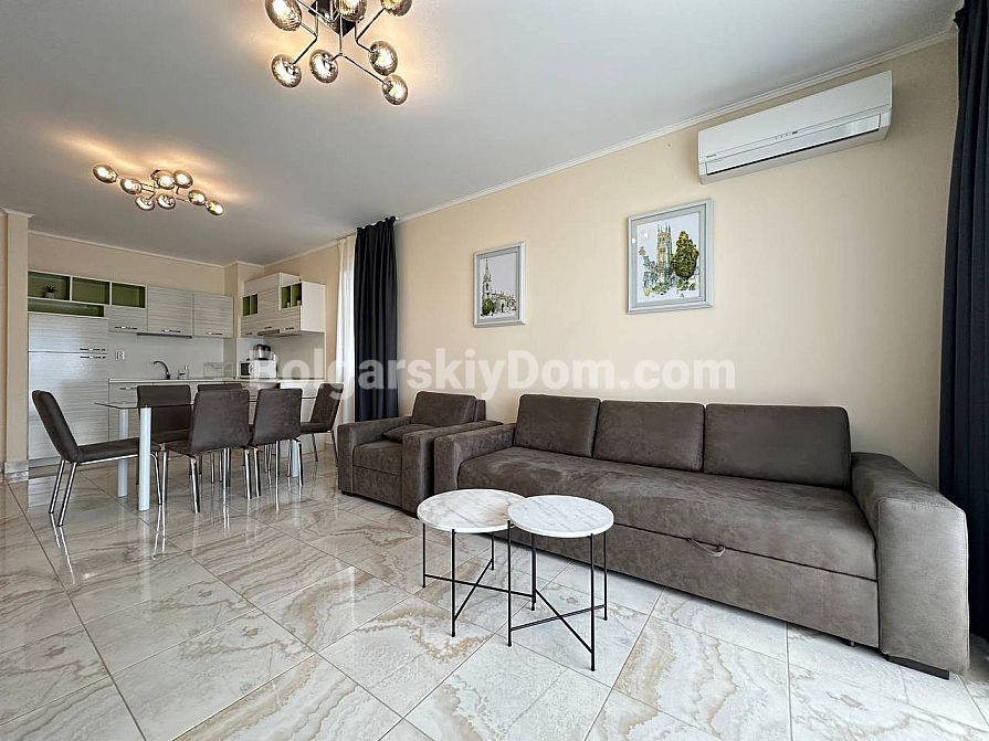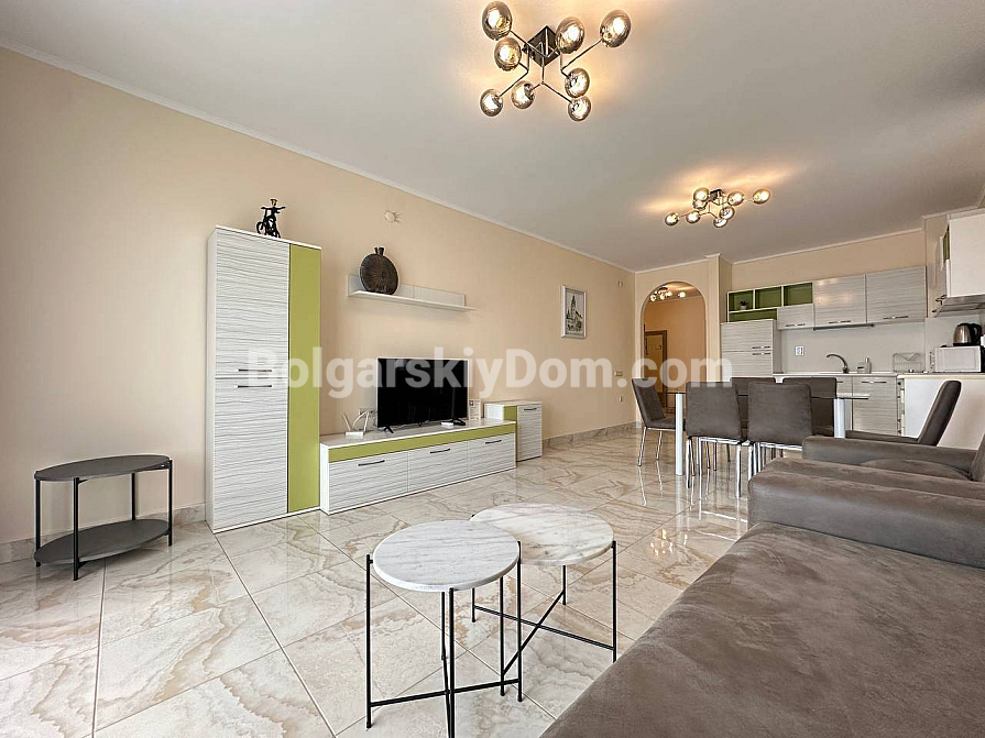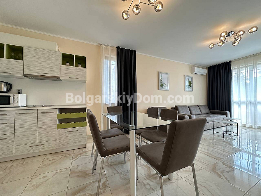 Der Poseidon-Komplex liegt nur 300 Meter vom Meer entfernt und bietet luxuriöse Infrastruktur. Die Wohnung befindet sich im 2. Stock (von 5) und hat eine niedrige jährliche Wartungsgebühr – nur 12 Euro pro qm. Eine seltene Kombination aus großzügigem Raum, exklusivem Design und sofortiger Bezugsfertigkeit.