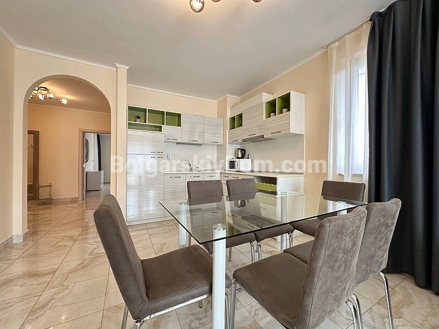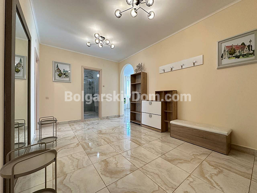 Bereit, die Schlüssel zu einer Designer-Residenz zu erhalten, in der Sie an nichts anderes denken müssen als an Entspannung? Hier ist ein besonderes Top-Angebot – ein luxuriöses, wirklich hochwertiges Apartment in Nessebar! Es handelt sich um eine großzügige Vierzimmerwohnung mit einer Fläche von 135 qm im Poseidon-Komplex, in dem alles auf höchsten Komfort ausgelegt ist. Sie erhalten ein echtes „All-Inclusive“-Immobilienpaket: die Wohnung ist in perfektem Zustand, wird mit exklusivem Design, hochwertigen Möbeln und modernen Geräten verkauft. Das Interieur ist in einem hellen, trendigen Pinterest-Stil gestaltet. Innen erwarten Sie drei vollwertige Schlafzimmer, ein helles Wohnzimmer mit Küche, zwei Badezimmer und ein Flur. Besonders charmant: zwei Terrassen, von denen eine direkt auf den Pool blickt.