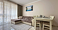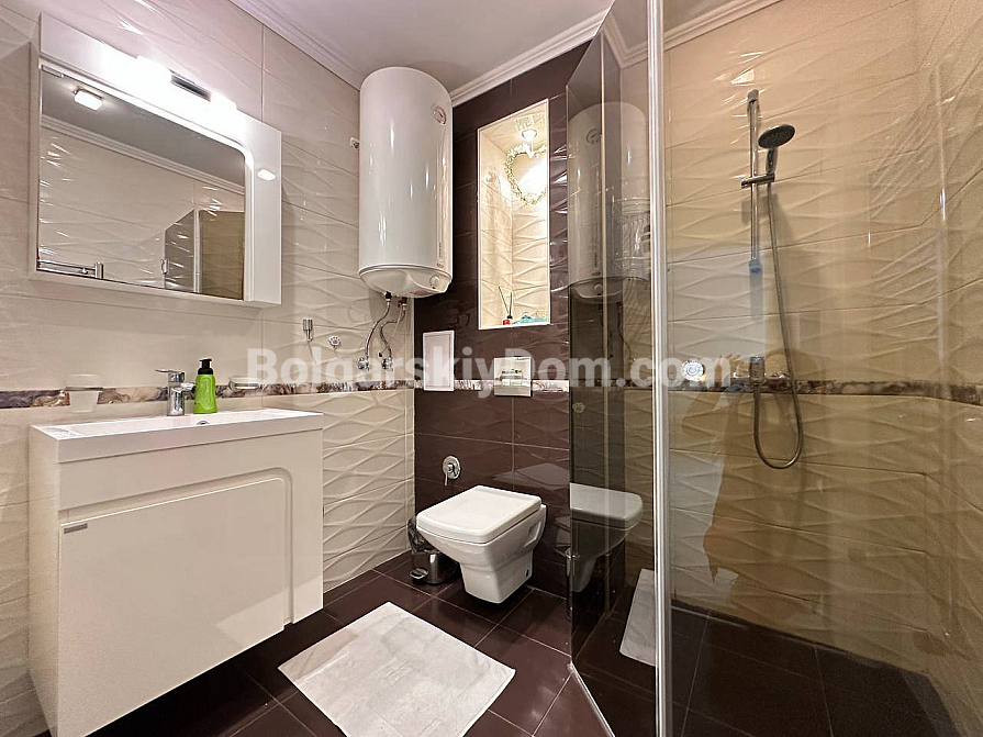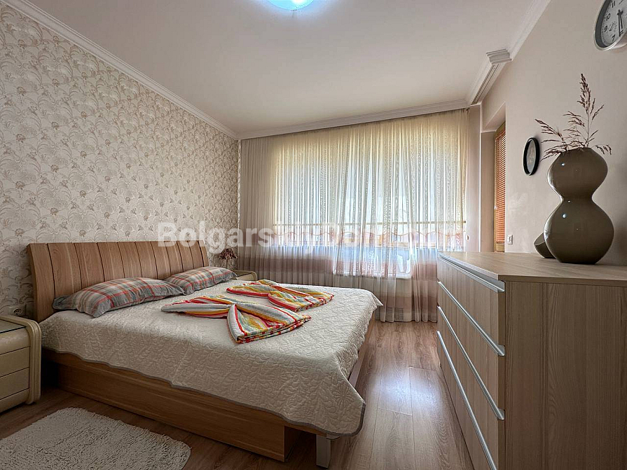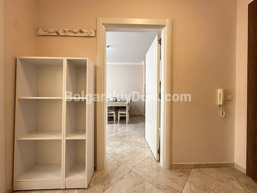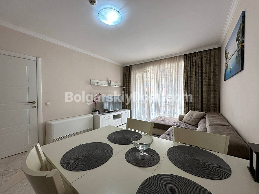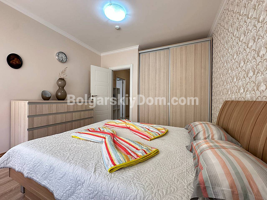 Eine moderne Zwei-Zimmer-Wohnung mit hochwertiger Renovierung und Möblierung ist bereit für Ihr komfortables Wohnen in Sveti Vlas. Die stilvolle, komplett ausgestattete Wohnung mit durchdachtem Design schafft eine Atmosphäre von Gemütlichkeit und Harmonie. Sie hat eine Fläche von 62 qm und befindet sich im zweiten Wohnstock. Das geräumige Wohnzimmer ist mit der Küche kombiniert und bildet einen einzigen funktionalen Raum für Entspannung und Geselligkeit. Die moderne Küche ist mit allen notwendigen Geräten ausgestattet: Kühlschrank, Herd, Ofen, Mikrowelle, Geschirrspüler und Waschmaschine — alles ist bereit für Ihren komfortablen Alltag. Das Schlafzimmer ist gemütlich, in hellen, entspannenden Tönen gestaltet. Ein großes Doppelbett, Einbauschrank und Kommode bieten ausreichend Stauraum, und weiche Textilien sorgen für Wärme und Gemütlichkeit. Das Badezimmer ist mit Duschkabine, Waschbecken mit Spiegel und Boiler ausgestattet — alles neu und gepflegt. Zudem gibt es eine Terrasse mit komfortablen Möbeln zur Entspannung und einem kleinen seitlichen Meerblick, das in nur 5 Minuten zu Fuß erreichbar ist.