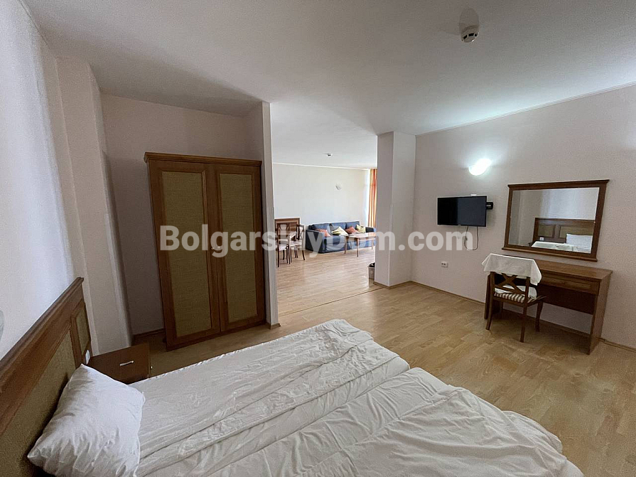 Der Komplex befindet sich in einer ruhigen, friedlichen Gegend zwischen Sveti Vlas und Elenite und bietet neben den traditionellen Annehmlichkeiten direkten Zugang zum Strand sowie zahlreiche Einrichtungen: Rezeption, Swimmingpool mit Kinderbereich, zweistöckige Lobby-Bar, Restaurant mit Panoramaterrasse und natürlich ein SPA-Bereich für maximale Entspannung. Rund-um-die-Uhr-Sicherheitsdienst und Aufzug sorgen für vollständigen Komfort und Ruhe. Der Strand ist nur 100 Meter entfernt, die Wartungsgebühr beträgt 12 Euro pro qm.