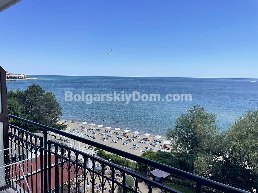 Wir präsentieren ein TOP-Angebot aus unserem aktuellen Katalog – eine Zwei-Zimmer-Wohnung mit einem atemberaubenden, frontalen Meerblick im prestigeträchtigen Komplex an der ersten Linie in Sveti Vlas – Tiva Del Mar! Die großzügige Wohnung mit einer Gesamtfläche von 79,75 qm befindet sich im fünften Stock und ist bereit, ihre neuen Eigentümer zu empfangen. Beim Betreten gelangen Sie in einen funktionalen Flur, der in ein helles Wohnzimmer mit Küchenzeile und ein gemütliches Schlafzimmer führt. Das Highlight ist die große Terrasse, die von beiden Zimmern aus zugänglich ist und einen spektakulären Panoramablick auf das Meer bietet – der perfekte Ort für Ihren Morgenkaffee oder ein romantisches Abendessen. Die Wohnung wird komplett möbliert angeboten, mit sorgfältig ausgewählten Möbeln und modernen Geräten.