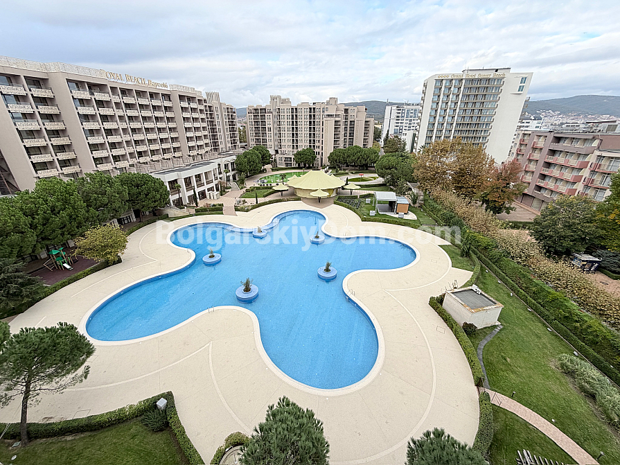 Eine neue, panoramische Neuheit in unserem Katalog! Zum Verkauf steht eine wunderschöne Wohnung mit 68 qm, Meer- und Poolblick in einem luxuriösen SPA-Komplex am Sonnenstrand! Das Apartment befindet sich im 6. Stock und verfügt über einen durchdachten Grundriss: Flur, geräumiges Wohnzimmer mit Küchen- und Essbereich, separates Schlafzimmer und Badezimmer. Die Immobilie wird möbliert und mit Haushaltsgeräten verkauft – komplett bezugsfertig. Vom Balkon aus genießt man einen herrlichen Blick auf die gepflegte Anlage mit ihren Pools. Dank des Status’ „Akt 16“ ist der Kauf rechtlich einwandfrei und sicher.