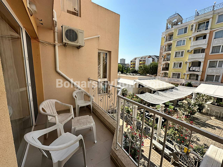 Neuzugang im Katalog von Bolgarskiy Dom, den Sie sich ansehen sollten! Eine ausgezeichnete Zwei-Zimmer-Wohnung – ideal für Urlaub und Vermietung. Diese gemütliche, nach Süden ausgerichtete Wohnung im Komplex Vanilla Garden hat eine Fläche von 48,76 qm, befindet sich im 2. Stock und ist bezugsfertig. Die Wohnung wird komplett möbliert verkauft, inklusive aller Geräte. Aus den Fenstern öffnet sich ein schöner Blick in den Innenhof. Diese Immobilie ist perfekt für Investitionen – sie liegt in der Nähe des Strandes und von Restaurants und ist sehr gefragt zur Sommervermietung.