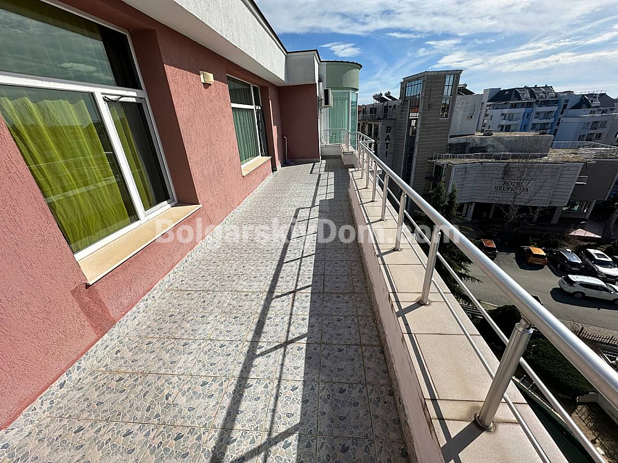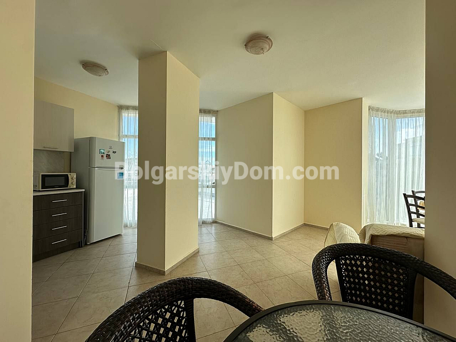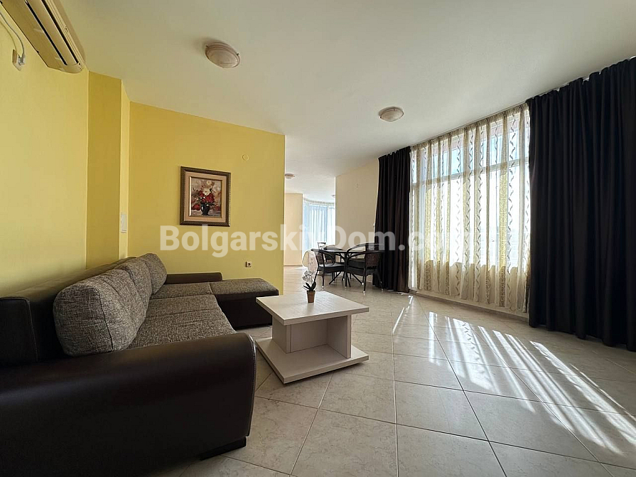 Wir präsentieren ein einzigartiges Angebot im Herzen von Sonnenstrand: eine riesige Zwei-Zimmer-Wohnung mit einer Fläche von 162 qm im Komplex Pyrop City! Dies ist der niedrigste Preis in unserem Katalog für diese Lage und Größe – verpassen Sie nicht die Gelegenheit, eine wirklich geräumige Immobilie zu erwerben. Die Wohnung befindet sich im 6. Stock und bietet einen einzigartigen Grundriss: ein großes Wohnzimmer mit Panoramafenstern und vor allem eine riesige Terrasse. Im Inneren befindet sich eine voll ausgestattete Eckküche mit allen Geräten, und die Wohnung ist komplett möbliert und sofort bezugsbereit. Rufen Sie uns an, um eine Besichtigung zu vereinbaren!