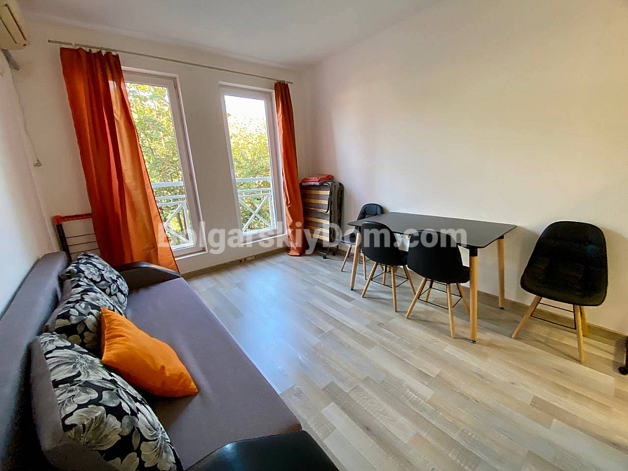Heißes Schnäppchen von Bolgarskiy Dom! Hervorragendes Studio mit Renovierung in einer Wohnanlage mit umfangreicher Infrastruktur! Zum Verkauf steht ein gemütliches Studio mit 28 qm im Komplex Sunny Day 6. Der Hauptvorteil dieser Immobilie ist die moderne Renovierung und neue Möbel – Sie können sofort einziehen, ohne Zeit für die Einrichtung zu verlieren. Das Studio ist hell und gepflegt, das Interieur ist in hellen Tönen mit warmen Holzakzenten gestaltet. Die kompakte Küchenzeile ist mit allem Notwendigen ausgestattet, einschließlich Kochfeld, Kühlschrank und Mikrowelle. Aus den Fenstern bietet sich ein malerischer Blick auf die umliegenden Berge.