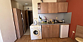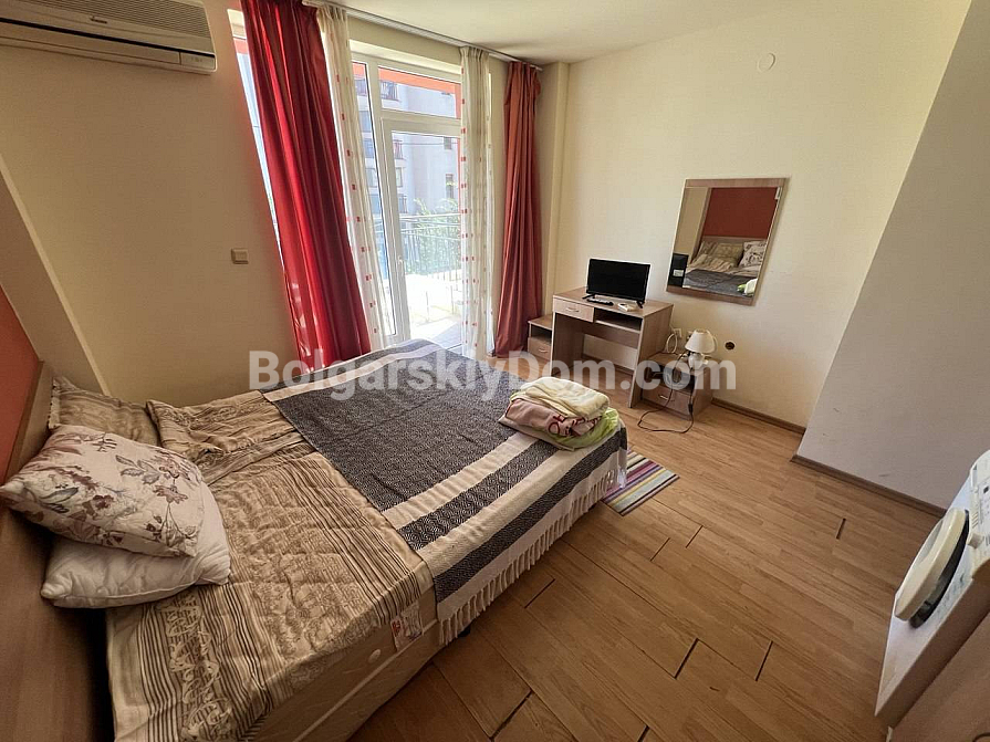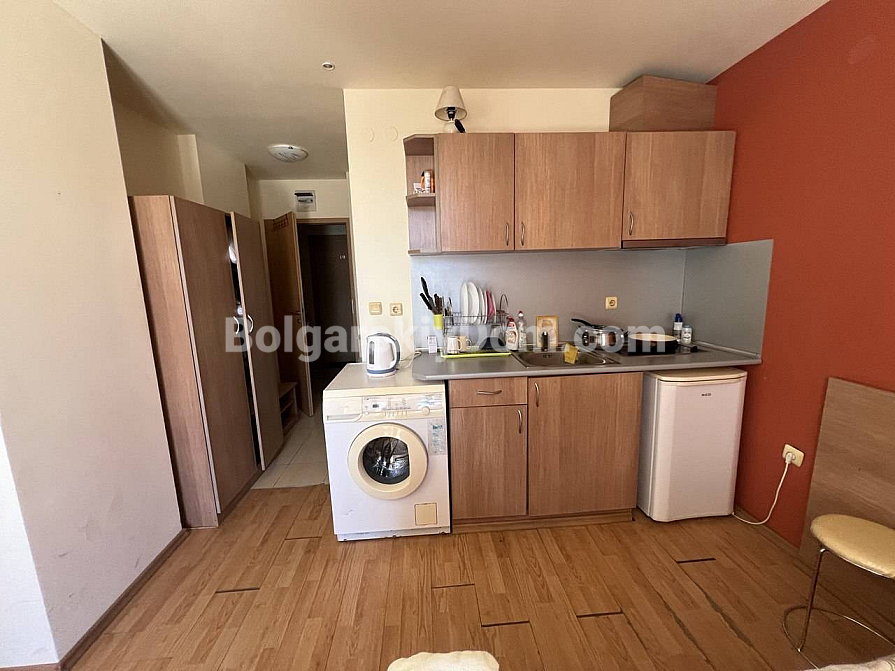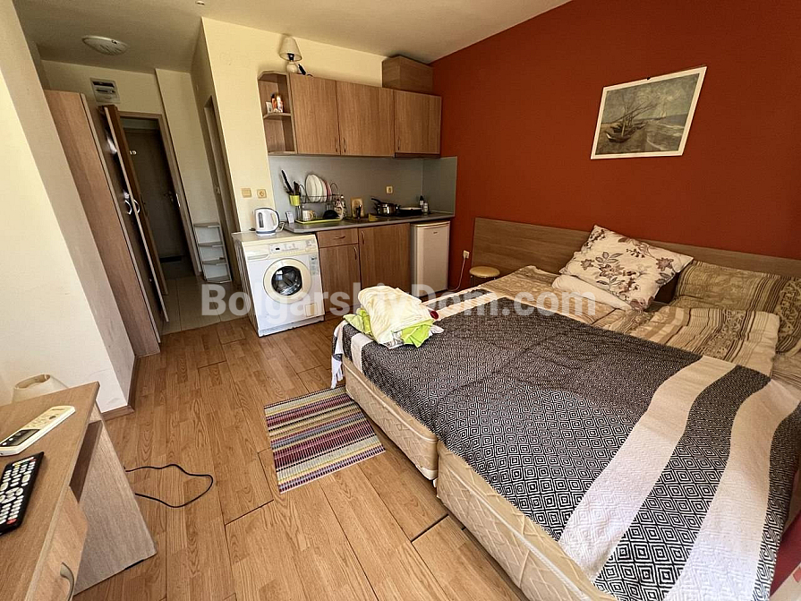 Dringendes Angebot von Bolgarskiy Dom! Gemütliches Studio mit kompletter Einrichtung im grünsten Viertel! Wir präsentieren ein kompaktes und komfortables 30 qm großes Studio im Komplex Aphrodite 1. Der Hauptvorteil dieser Immobilie ist die vollständige Möblierung und die heimelige Atmosphäre. Der Wohnbereich vereint Schlafzimmer mit großem Doppelbett, eine Kochnische und einen kleinen Essbereich. Die Küche ist mit allen notwendigen Geräten, einschließlich Waschmaschine, ausgestattet. Das Interieur in warmen Farbtönen wirkt trotz Standardaufteilung sehr gemütlich und hell. Besichtigungen möglich – rufen Sie an!
