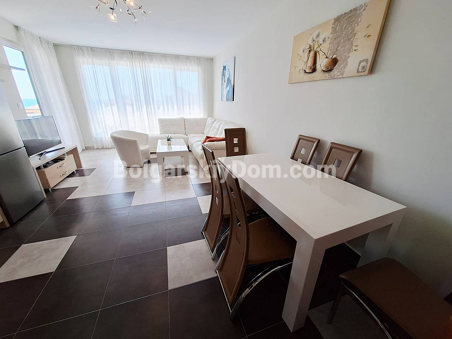 Stellen Sie sich vor – ein Morgen in Sveti Vlas, eine Tasse Kaffee auf dem Balkon, und vor Ihnen breitet sich das endlose Meer aus! Wir bieten genau diesen Lebensstil in einer geräumigen Drei-Zimmer-Wohnung, die auf ihren neuen Besitzer im Herzen des Ferienortes wartet! Ein exklusives Angebot – 108 qm purer Komfort im vierten Stock eines Elite-Wohnkomplexes mit Aufzug. Die Wohnung wird mit brandneuen Möbeln und Haushaltsgeräten verkauft. Sie müssen nur einziehen und genießen! Der Grundriss ist einfach perfekt: ein Eingangsbereich, ein großes Wohnzimmer mit Zugang zum Balkon mit Meerblick, zwei gemütliche Schlafzimmer sowie ein zweiter Balkon mit einer seltenen Kombination – Blick sowohl auf das Meer als auch auf die malerischen grünen Berge. Und das Beste – Sie müssen nie wieder nach einem Parkplatz suchen, denn im Preis ist bereits ein eigener Stellplatz (12,5 qm) direkt am Eingang des Gebäudes enthalten.