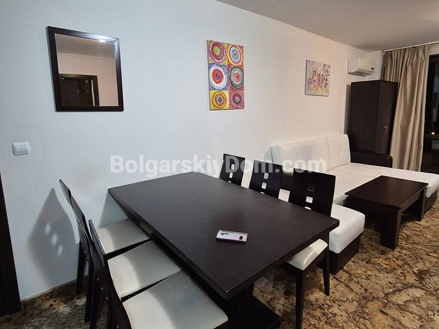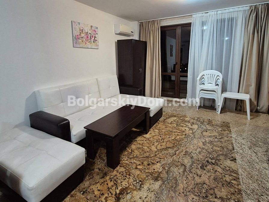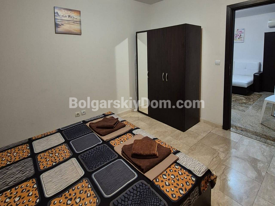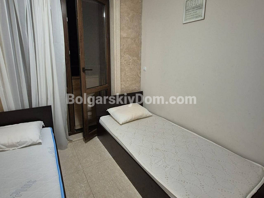 Im Katalog von Bolgarskiy Dom – eine hervorragende Drei-Zimmer-Wohnung (two-bedroom) im Amara-Komplex in Sonnenstrand, die sofort bezugsfertig ist! Diese großzügige Wohnung mit einer Fläche von 73 qm befindet sich im praktischen zweiten Stock und ist vollständig möbliert – Sie müssen also keine zusätzliche Zeit für die Einrichtung aufwenden. Die Raumaufteilung ist sehr komfortabel: ein geräumiges Wohnzimmer mit Küchenbereich, zwei separate Schlafzimmer, ein Badezimmer mit WC und Duschkabine sowie zwei Terrassen mit schönem Blick auf den grünen Poolbereich des Komplexes. Dies ist ein idealer, sehr liquider Immobilienvorschlag – sowohl für Ihren Familienurlaub als auch für ein stabiles Mieteinkommen.