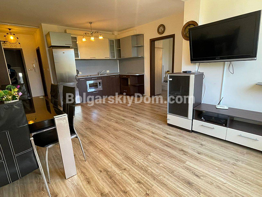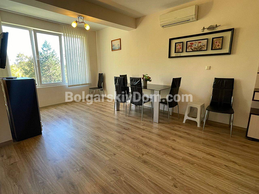 Gemütliche Zwei-Zimmer-Wohnung im Herzen einer grünen Oase – des Komplexes *Pines Beach Resort* in Byala! Eine große Terrasse mit Blick auf das gepflegte Gelände, ein gemütliches Wohnzimmer mit Möbeln und Platz für Ihre Inspiration, eine helle Küche mit Essbereich, ein separates Schlafzimmer und ein Badezimmer – hier ist alles bereit für ein komfortables Leben oder einen erholsamen Urlaub am Meer. Die Wohnfläche beträgt 62 m², die Wohnung befindet sich im zweiten Stock eines modernen fünfstöckigen Gebäudes.