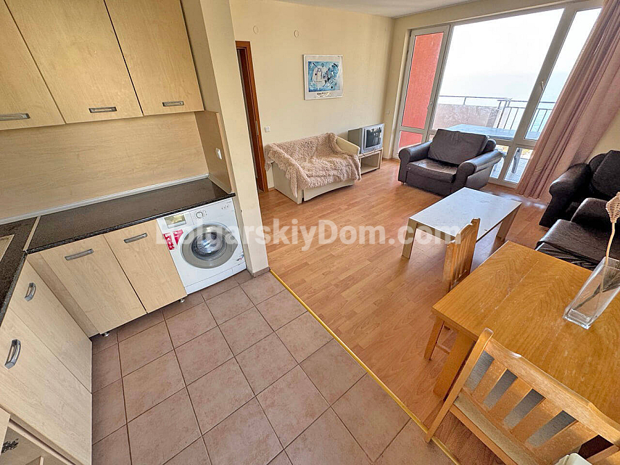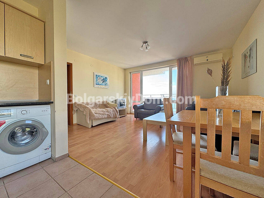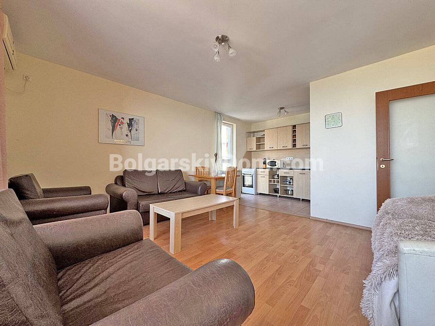 Auf der Suche nach einer wirklich lohnenswerten Immobilie? Beachten Sie diese geräumige Zweizimmerwohnung mit einem atemberaubenden Panoramablick auf das Meer – nur 50 Meter vom Strand entfernt! Dieses sehr rentable Apartment befindet sich im Wohnkomplex Marina View Fort Beach, in erster Meereslinie zwischen dem prestigeträchtigen Sveti Vlas und dem Ferienort Elenite. Die Wohnung hat eine Fläche von 74 m², liegt im dritten Stock und wird vollständig möbliert sowie mit allen Haushaltsgeräten ausgestattet verkauft. Die Aufteilung umfasst einen Eingangsbereich, ein großes Wohnzimmer mit Küche und Essbereich, ein gemütliches Schlafzimmer, ein Badezimmer und eine große Terrasse. Von der Terrasse eröffnet sich ein beeindruckender Blick auf das Meer – eine tägliche Inspirationsquelle. Der Komplex ist mit Akt 16 vollständig in Betrieb und hat niedrige Betriebskosten.