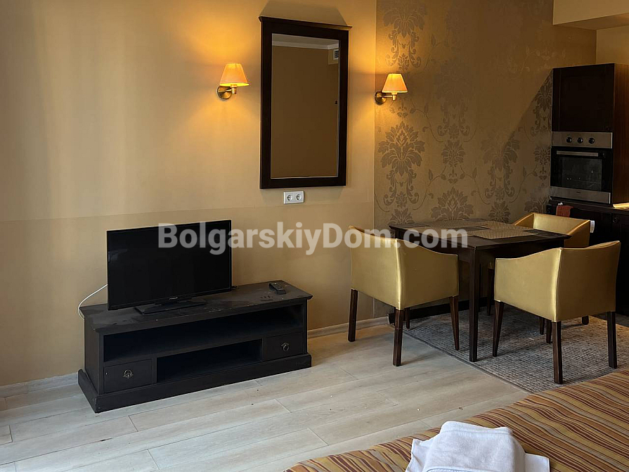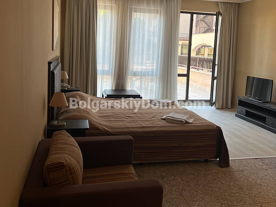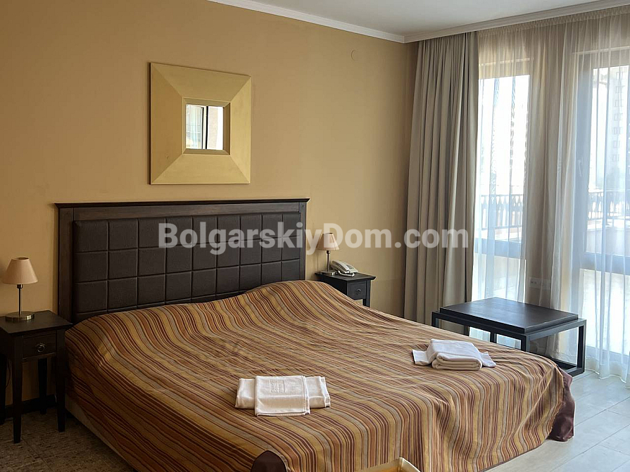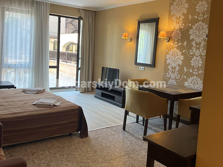 In unserem Katalog gibt es ein neues Angebot – ein sehr geräumiges Studio mit einer Fläche von 71 qm zu einem hervorragenden Preis pro Quadratmeter, gelegen im prestigeträchtigen Komplex Barcelo Royal Beach in Sonnenstrand. Das Apartment befindet sich im 1. Stock und nur 200 Meter vom Meer entfernt. Das Interieur ist im klassischen Stil gestaltet: dunkle Möbel harmonieren elegant mit den warmen, beigefarbenen Wänden und schaffen eine gemütliche und stilvolle Atmosphäre. Die Wohnung ist vollständig möbliert und in ausgezeichnetem Zustand. Sie verfügt über eine voll ausgestattete Küche mit Einbaugeräten sowie ein gut eingerichtetes Badezimmer. Ein besonderes Highlight ist die sehr große Terrasse mit möblierter Ruhezone, ideal zum Genießen der Meeresbrise. Dank seiner Fläche und Funktionalität ist dieses Studio eine äußerst attraktive Investition mit Wertsteigerungspotenzial.