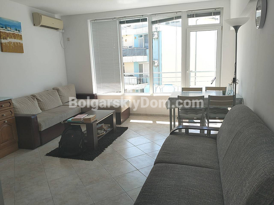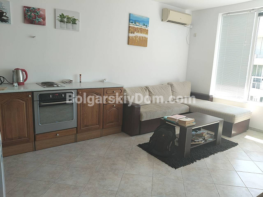 Komfort und Ruhe im Alltag – diese Zweizimmerwohnung in einer Wohnanlage am Fuße des Balkangebirges verkörpert genau das. Das Apartment mit 66 qm befindet sich im zweiten Stock eines modernen Gebäudes mit Aufzug. Das Gebäude verfügt über Akt 16 – Sie können sofort einziehen. Die Aufteilung umfasst einen Flur, ein helles Wohnzimmer mit Küche und Essbereich, ein gemütliches Schlafzimmer, ein Badezimmer mit Duschkabine und zwei sonnige Terrassen. Die Wohnung ist vollständig möbliert und mit Geräten ausgestattet. Ideal für das ganzjährige Wohnen, den Sommerurlaub oder als Investition mit garantiertem Mietertrag.