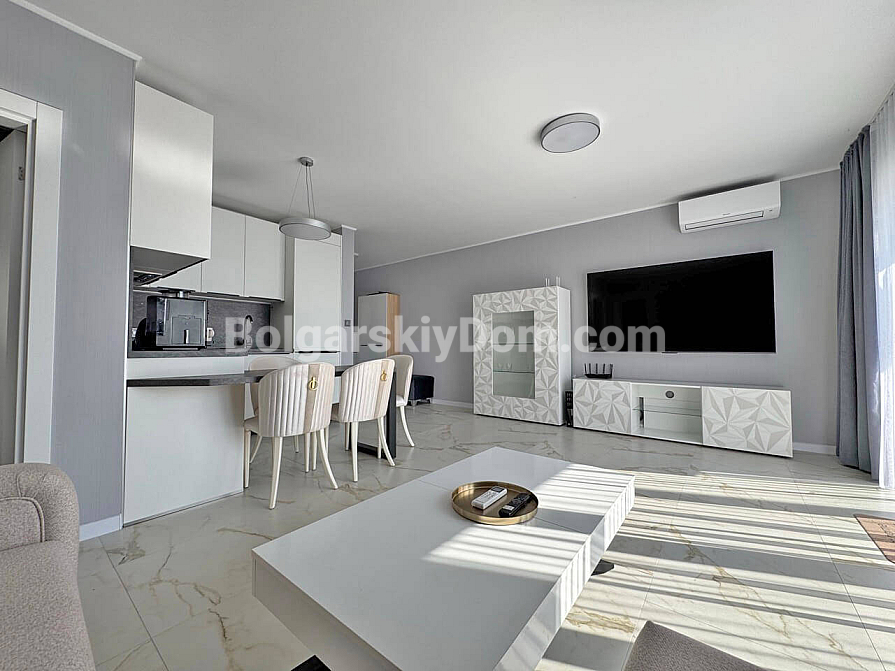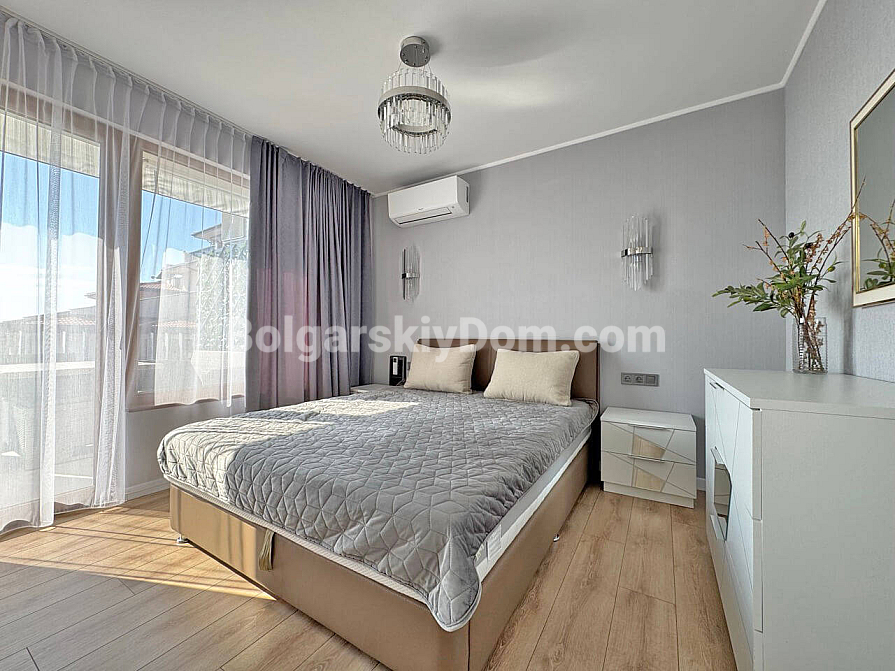 Ein neues Flaggschiff-Apartment ist im Katalog von Bolgarskiy Dom erschienen: eine Dreizimmerwohnung mit 103 qm und einem beeindruckenden, direkten Meerblick im Komplex Sun Coast Resort, der sich buchstäblich in erster Linie in Sveti Vlas befindet! Die Wohnung ist in perfektem Zustand, komplett möbliert und ausgestattet. Die Aufteilung ist ideal für eine Familie: Eingangshalle, geräumiges Wohnzimmer mit Küchen- und Essbereich, zwei vollwertige Schlafzimmer, Badezimmer und ein Balkon, der als gemütliche Ruhezone eingerichtet ist. Sie kaufen ein bezugsfertiges Zuhause, in dem Sie sich nur noch entspannen müssen!