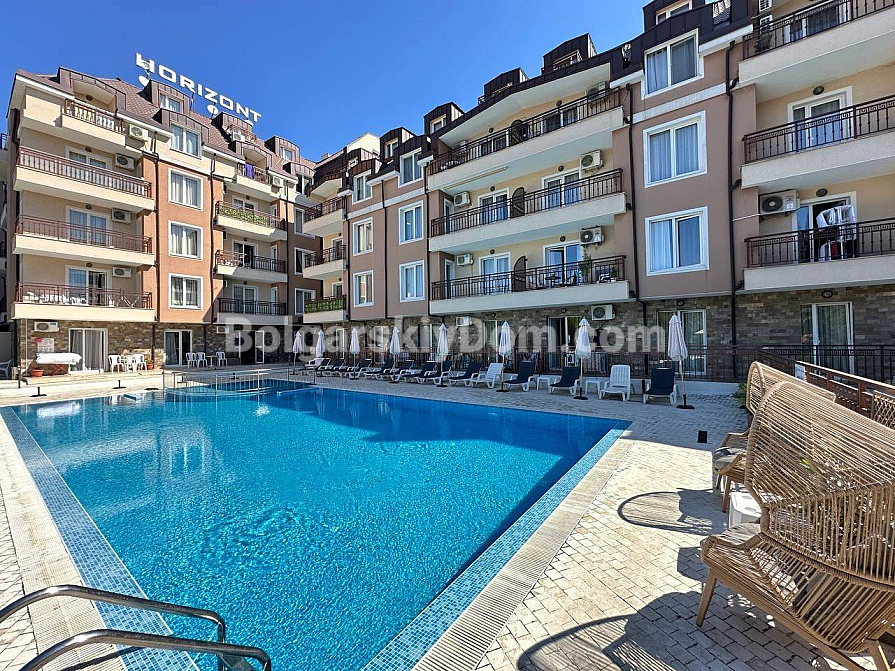 Der Komplex Horizon liegt im grünen, ruhigen Stadtteil Zora, nur 300 Meter vom Meer und der wunderschönen Promenade entfernt. In der Nähe befinden sich ein Supermarkt, ein Café und einige nützliche Geschäfte. 2,5 km in die eine Richtung — das Zentrum von Sveti Vlas mit seiner ganzjährigen Infrastruktur. Ungefähr ebenso weit in die andere Richtung — und Sie sind im Herzen des Sonnenstrandes. Ein idealer Ort sowohl für den Sommerurlaub als auch für komfortables Wohnen das ganze Jahr über.