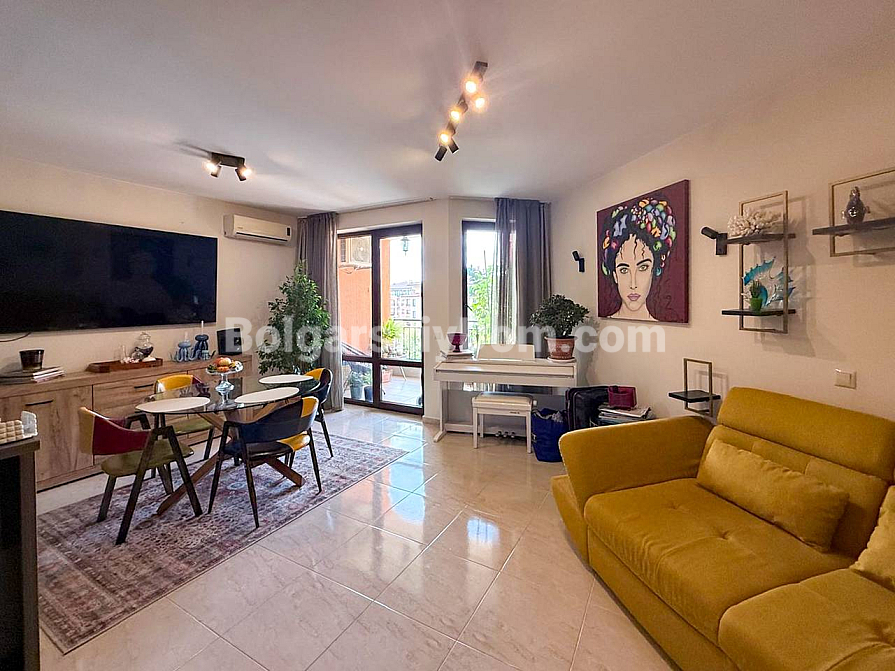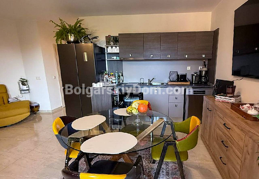 Neuheit im Top-Resort! Bolgarskiy Dom präsentiert eine stilvolle Zweizimmerwohnung mit einer Fläche von 66 qm im Komplex Star Dreams in Sveti Vlas! Diese einzigartige Wohnung befindet sich im 3. Stock, ist vollständig möbliert und sofort bezugsbereit. Das Interieur ist ein echtes Meisterwerk: gestaltet im modernen Boho-Stil mit kreativem Design und eleganten Details, die eine besondere Atmosphäre der Harmonie schaffen. Die Küche ist komplett ausgestattet, einschließlich Geschirrspüler und großem Kühlschrank, und im Wohnzimmer befindet sich ein sehr großer Fernseher – jedes Detail ist auf maximalen Komfort ausgerichtet.