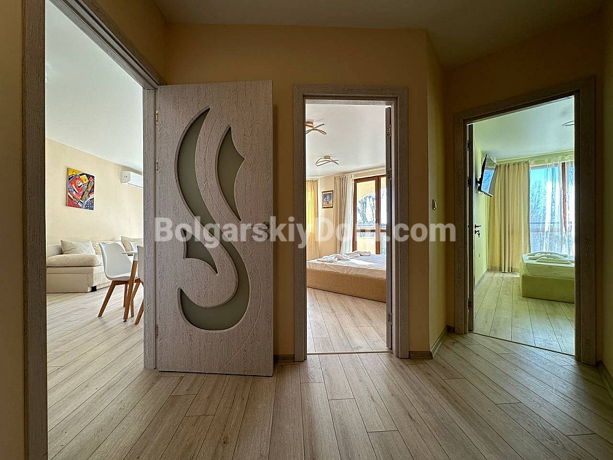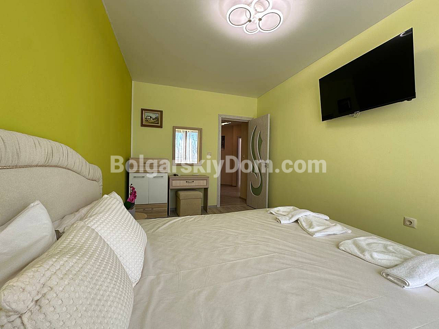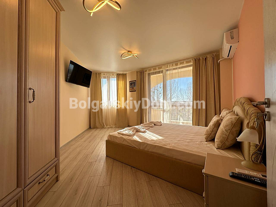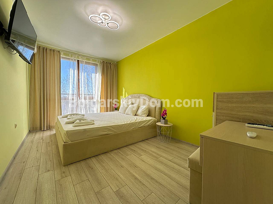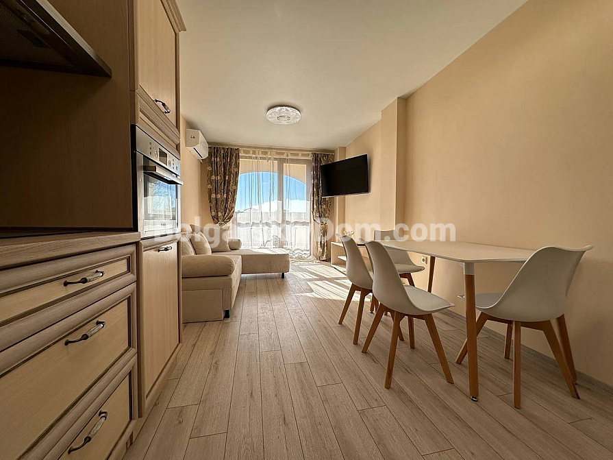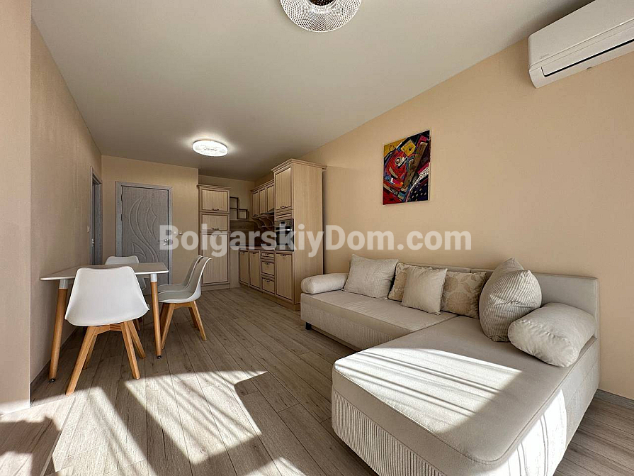Der Wohnkomplex Seasons 3 ist eine grüne Insel im Rhythmus von Sunny Beach. Es geht hier nicht um Luxus — es geht um Harmonie. Es ist ruhig, aber niemals langweilig. Es gibt einen Innenparkplatz, einen Grillbereich für gemütliche Abende mit Freunden und ein kleines offenes Restaurant, in dem das Abendessen nahtlos in Gespräche übergeht. Auf dem Gelände gibt es einen Pool — perfekt für die Tage, an denen man nicht zum Strand gehen möchte. Der Aufzug rettet Sie nach langen Spaziergängen. Alles, was Sie brauchen, befindet sich in der Nähe — von Geschäften bis hin zu wichtigen Dienstleistungen. Zum Meer sind es etwa 10 Minuten zu Fuß. Ein Bonus: eine ausgezeichnete Sauna direkt im Komplex.