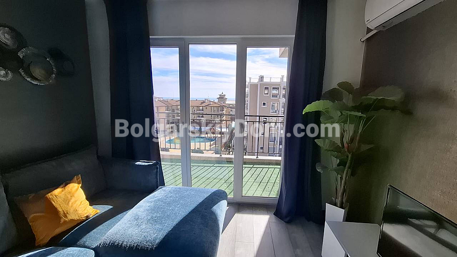 Wir setzen die Saison bei Bolgarskiy Dom fort! Im Katalog ist eine exklusive Zwei-Zimmer-Wohnung mit einer Fläche von 60,50 qm und einem atemberaubenden Meerblick im Komplex Domus Extra in Sveti Vlas erschienen! Dieses Apartment befindet sich im 4. Stock und ist ein Beispiel für ein sofort bezugsfertiges, stilvolles Zuhause. Die Raumaufteilung umfasst ein Wohnzimmer mit integrierter Küche, ein gemütliches Schlafzimmer und ein Badezimmer mit Duschkabine. Das Highlight der Wohnung ist die Terrasse mit beeindruckendem Meerpanorama. Die Wohnung ist vollständig möbliert und bereit für den sofortigen Einzug oder für die Nutzung als renditestarke Investitionsimmobilie.