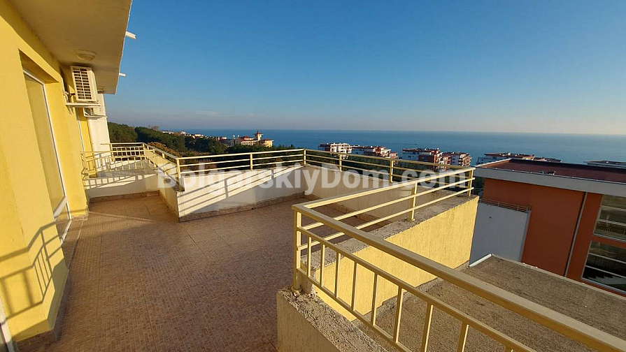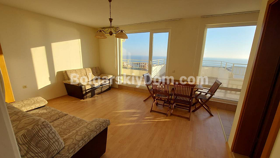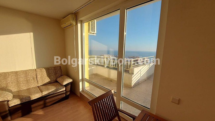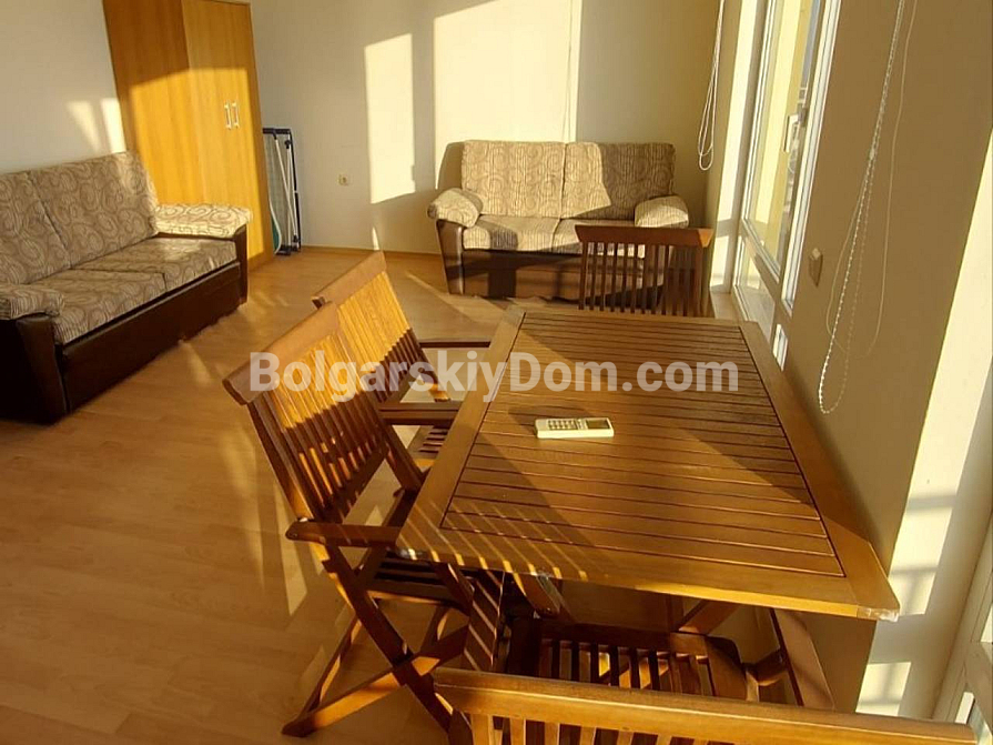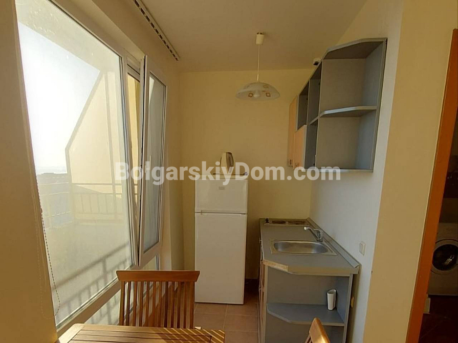 Suchen Sie eine Meerblick-Wohnung zu einem guten Preis? Unsere Agenten bieten Ihnen bereits ein hervorragendes Studio-Apartment mit 63 qm im prestigeträchtigen Crown Fort Club Komplex in Sveti Vlas! Diese Wohnung befindet sich im fünften Stock (nicht der oberste), was Ihnen einen Panoramameerblick direkt von der Terrasse garantiert. Die Wohnung ist voll möbliert und sofort bezugsfertig, sei es für den Eigenbedarf oder für eine rentable Vermietung. Der Grundriss umfasst einen Eingangsbereich, ein Wohnzimmer mit Küche und Schlafbereich sowie ein Badezimmer mit Duschkabine.