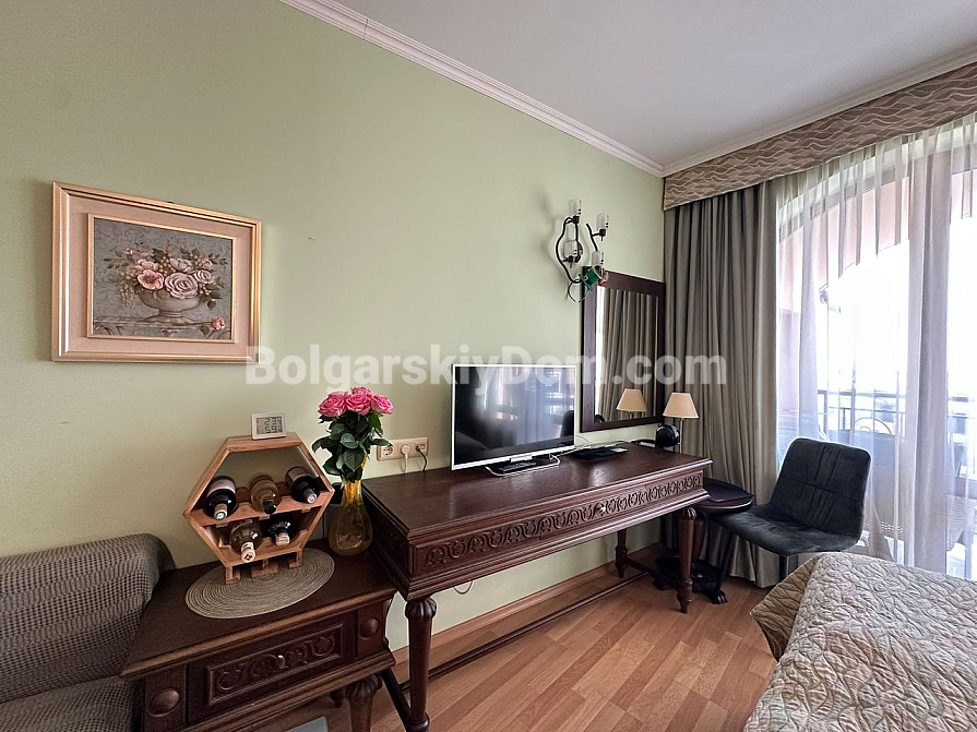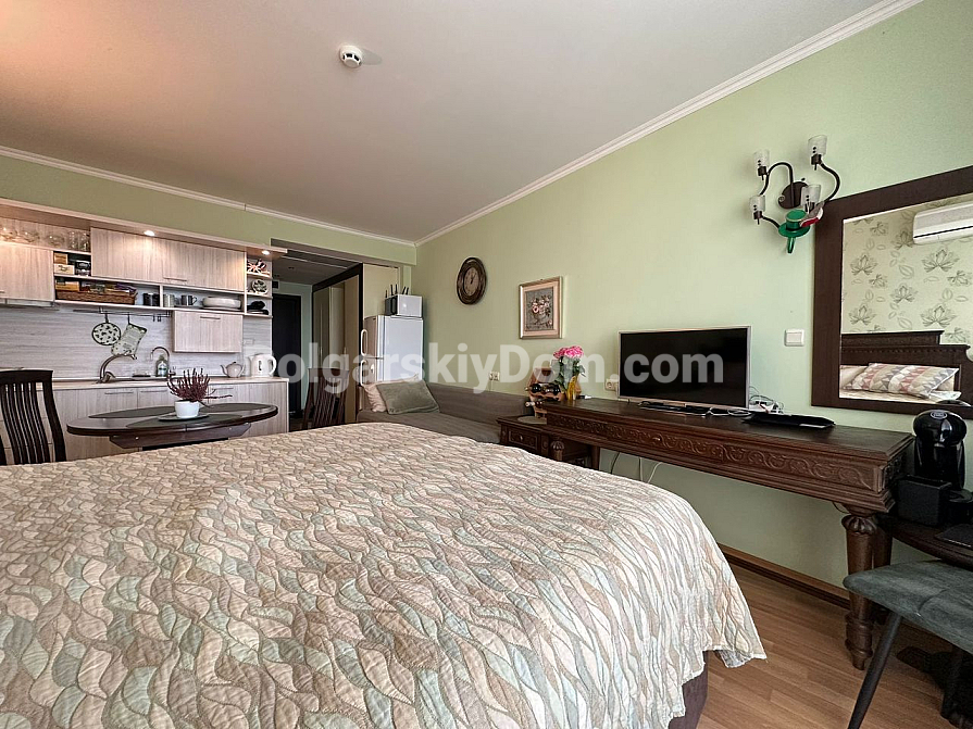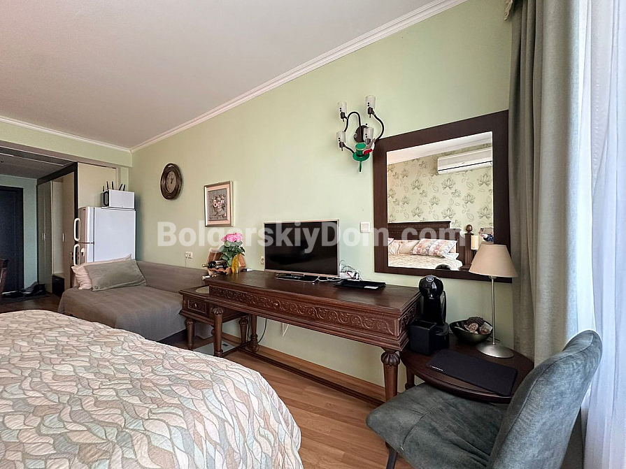 Die Agentur Bolgarskiy Dom präsentiert! Bereiten Sie sich auf ein Angebot vor, das Ihr Leben wirklich verändern kann. Zum Verkauf steht ein exklusives Studioapartment mit direktem, atemberaubendem Meerblick im Zentrum von Luxus: dem Grand Hotel Sveti Vlas. Dieses Objekt im 5. Stock ist ein perfekt ausgestattetes, bezugsfertiges Apartment in einwandfreiem Zustand. Warme Farbtöne, stilvolles Design, eine funktionale Küchenzeile und vor allem eine Panoramaterrasse, von der aus das Meer förmlich in den Raum hineinfließt! Ein idealer Vermögenswert für eine renditestarke Investition mit garantiertem Wachstumspotenzial und sofortigen Mieteinnahmen. Fläche – 45 qm, und unsere Makler erwarten bereits Ihren Anruf!